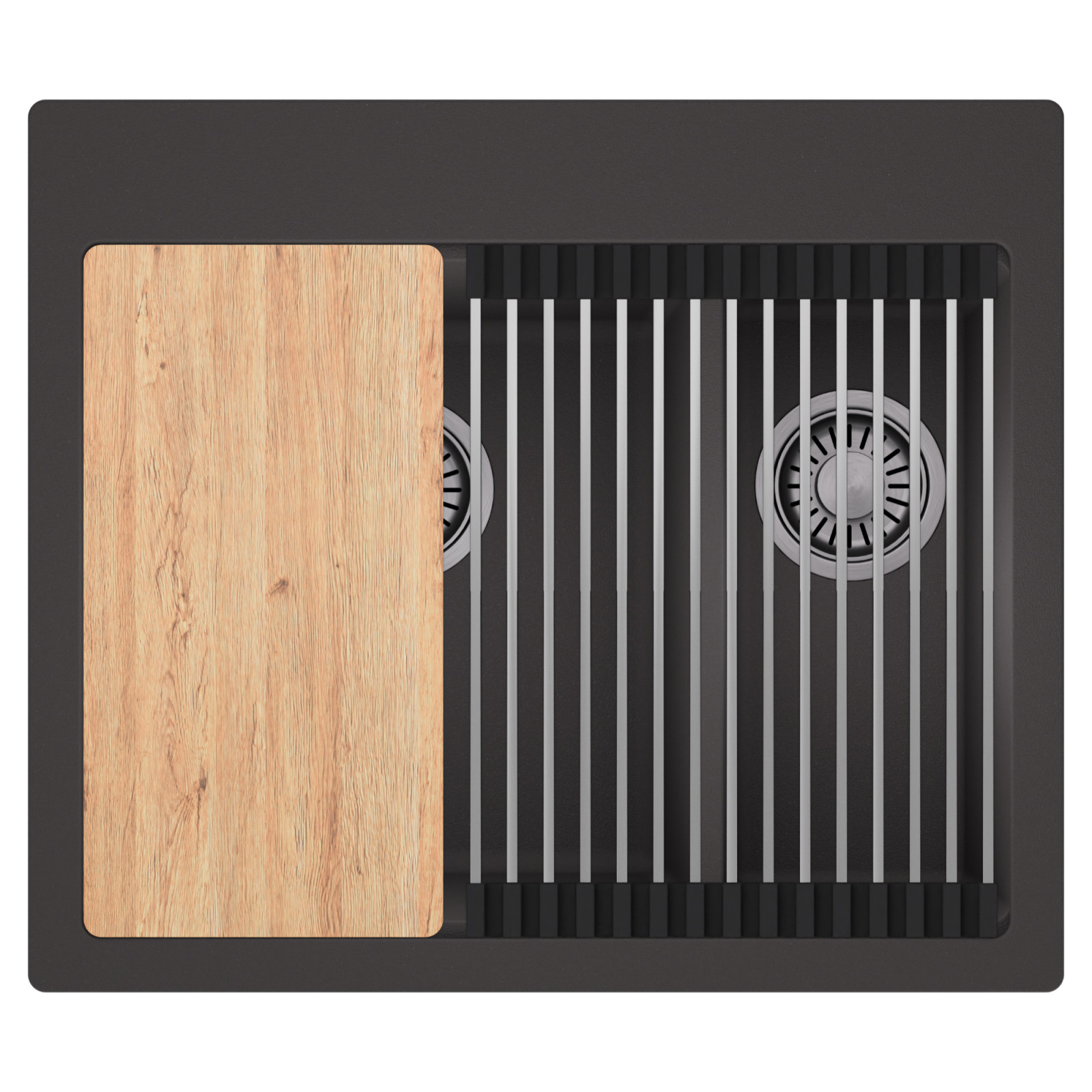 HD Aspen 58 Kétmedencés mosogatótálca szett, vágódeszkával és csepegtetőráccsal, matt antracit