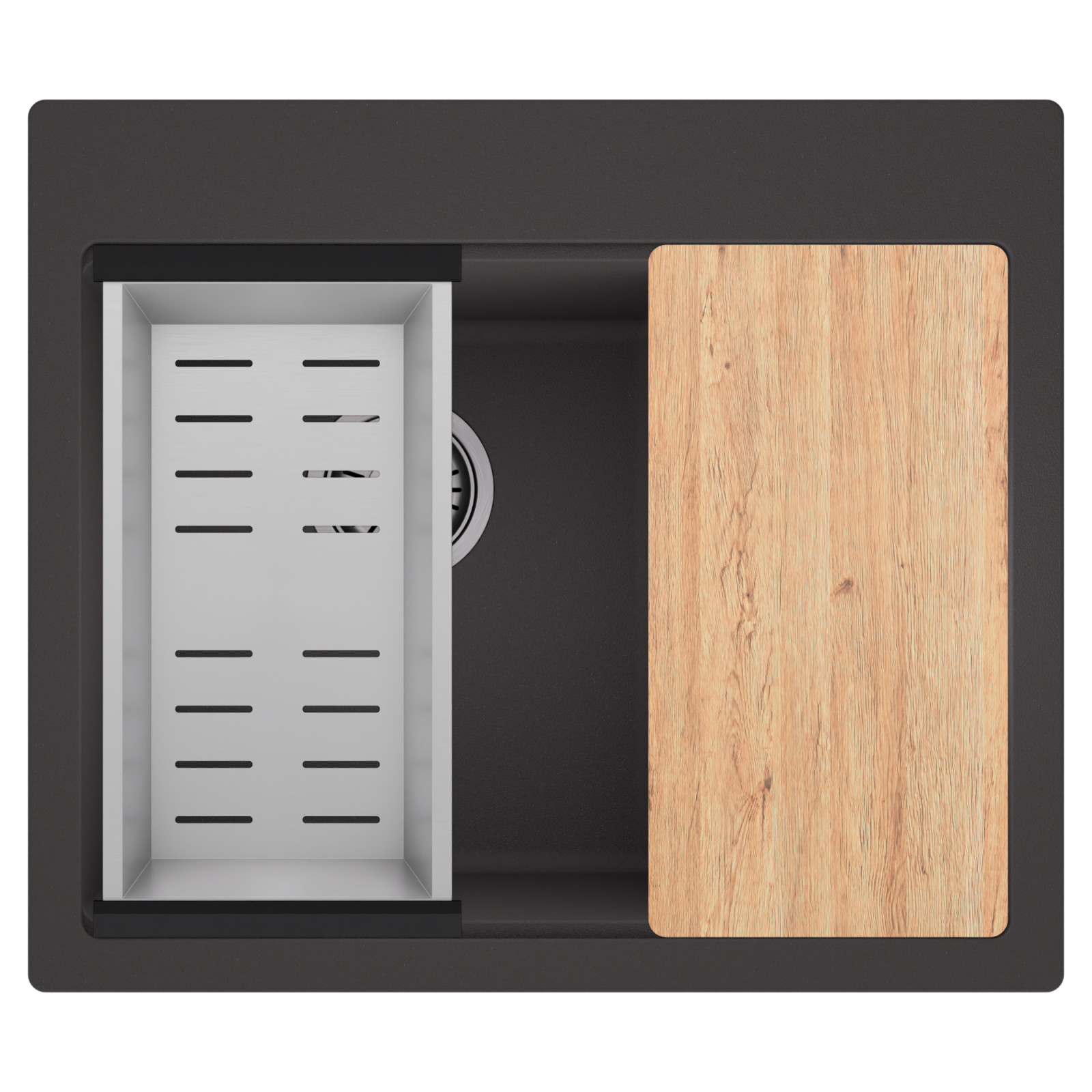 HD Aspen 58 Kétmedencés mosogatótálca szett, vágódeszkával és csepegtetőkosárral, matt antracit