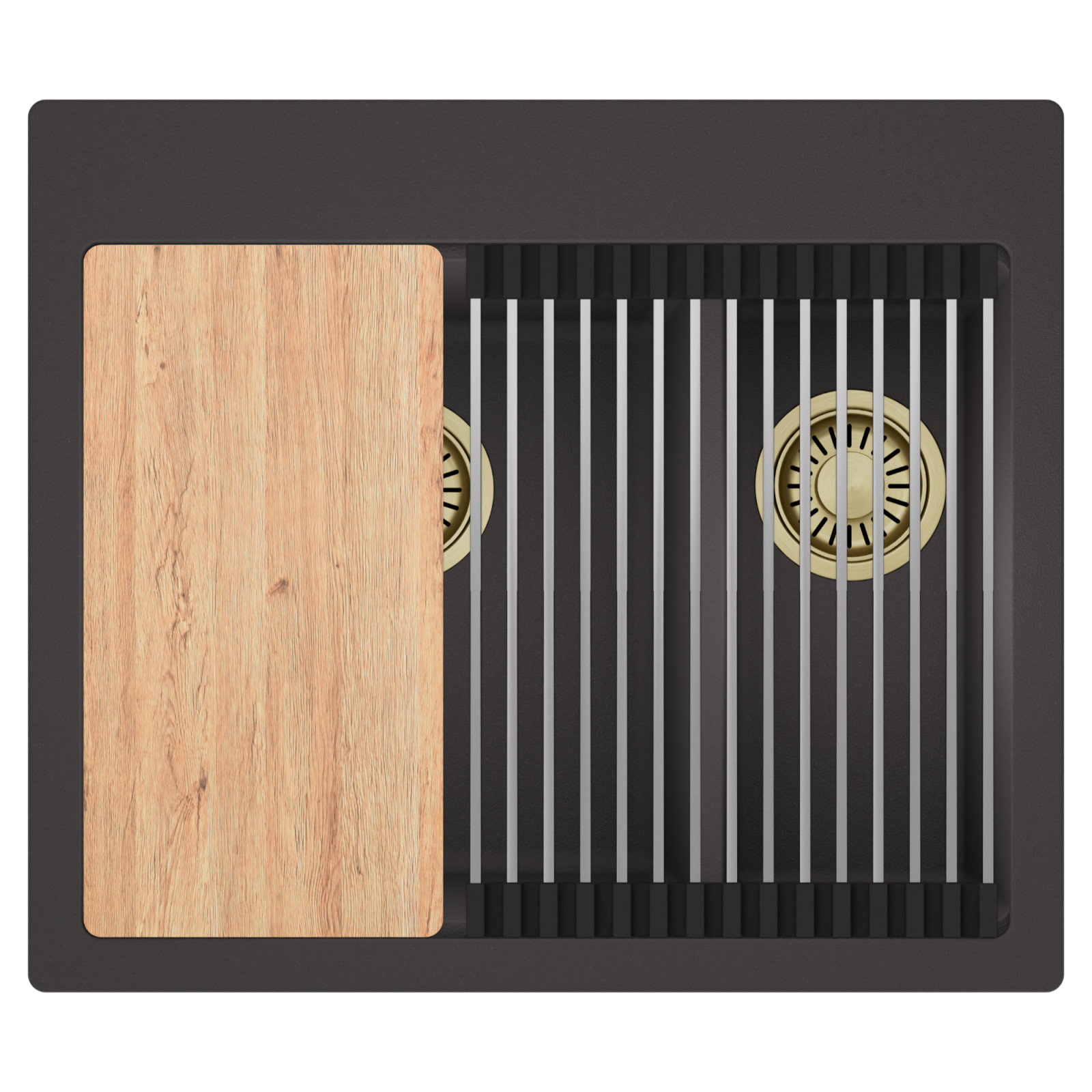 HD Aspen 58 Kétmedencés mosogatótálca szett, vágódeszkával és csepegtetőráccsal, matt antracit
