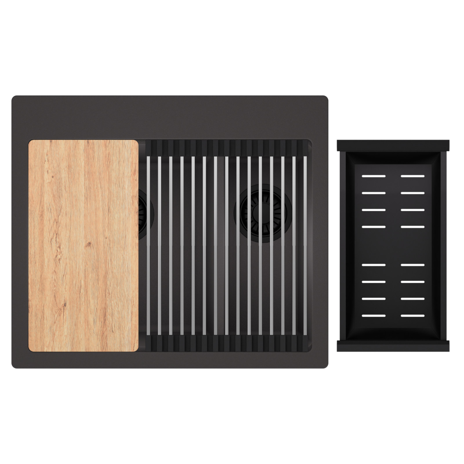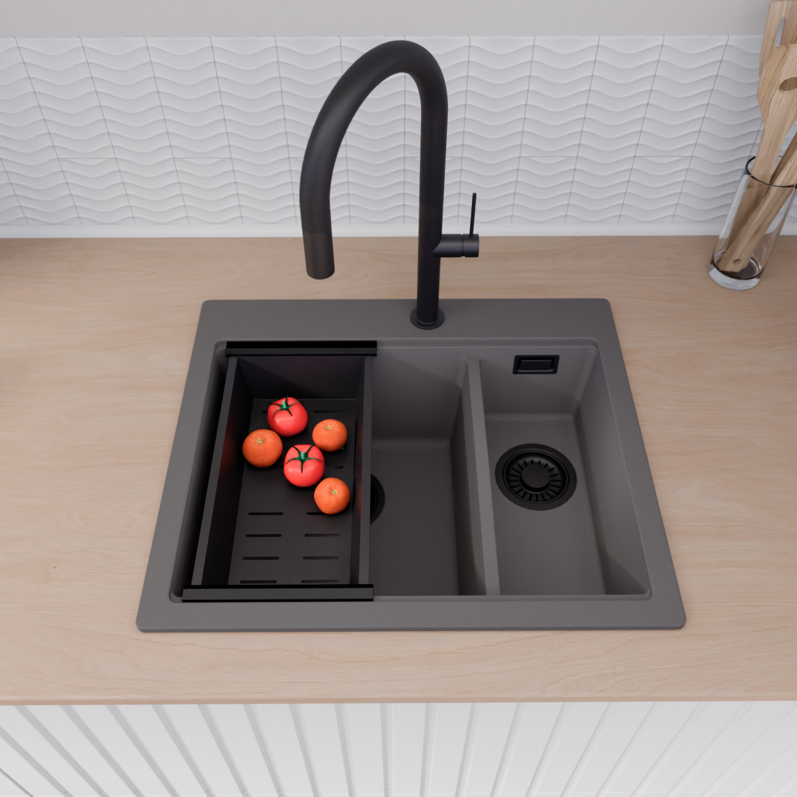 HD Aspen 58 Kétmedencés mosogatótálca szett, vágódeszkával, csepegtetőráccsal és kosárral, matt antracit