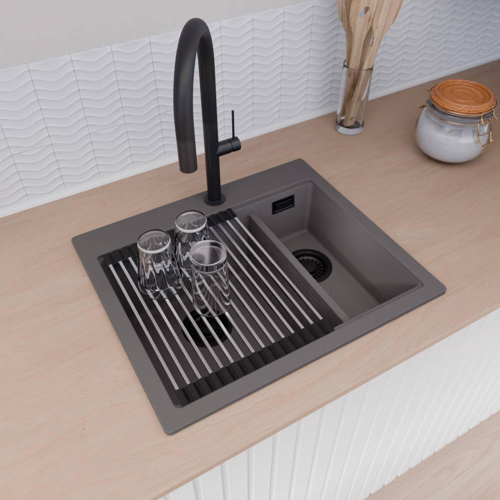 A mosogató prémium minőségű gránit kompozitból készült. Letisztult megjelenése mellett rendkívül praktikus, így bármilyen stílusú konyhába harmonikusan illeszkedik. A strapabíró gránit anyag hosszú távon is megbízható használatot garantál.