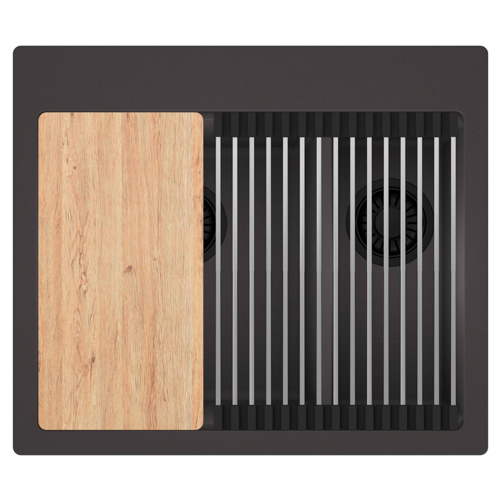 HD Aspen 58 Kétmedencés mosogatótálca szett, vágódeszkával és csepegtetőráccsal, matt antracit