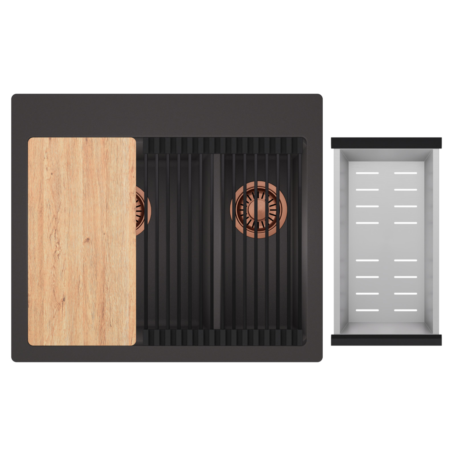 HD Aspen 58 Kétmedencés mosogatótálca szett, vágódeszkával, csepegtetőráccsal és kosárral, matt antracit