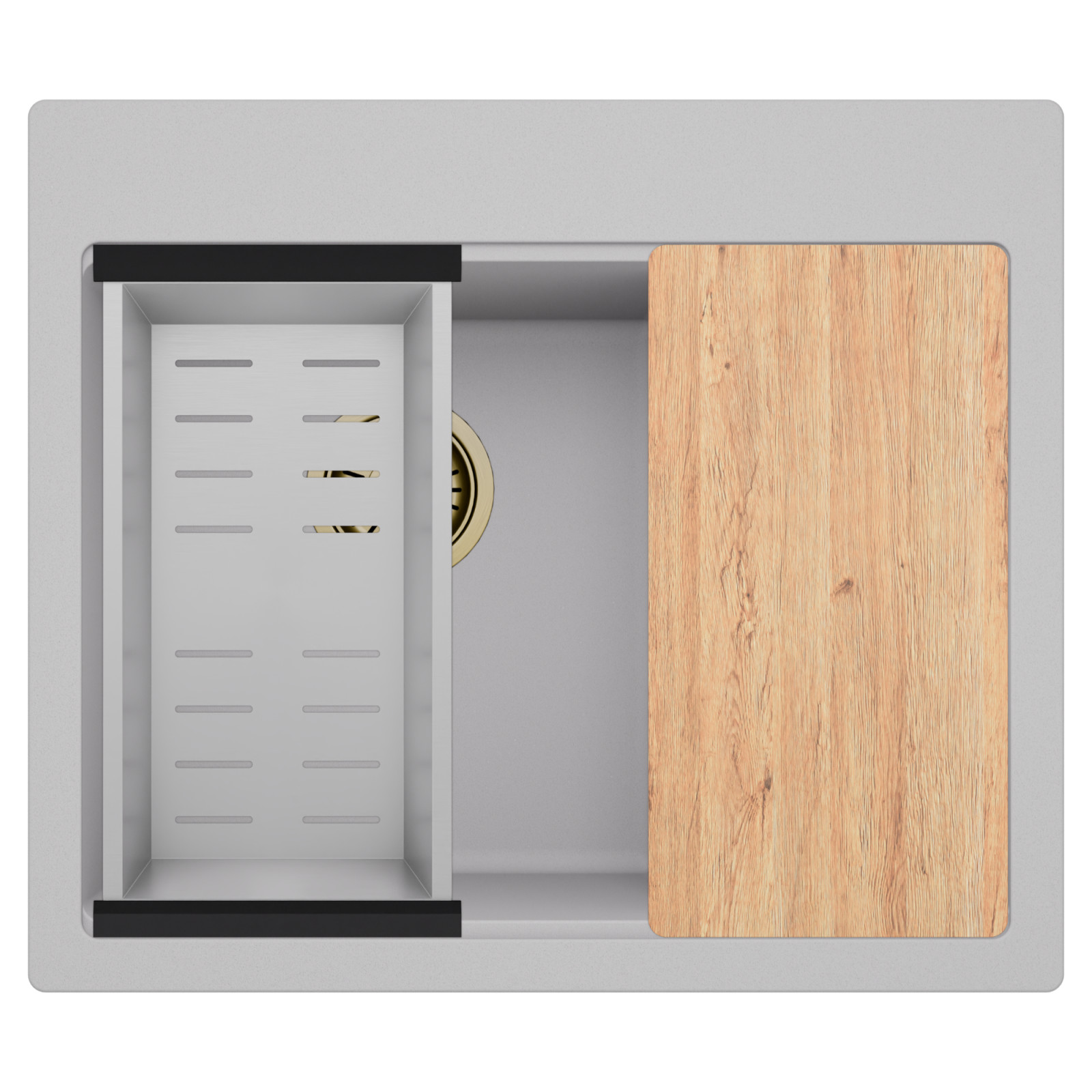 HD Aspen Grey 58 Kétmedencés mosogatótálca szett, vágódeszkával és csepegtetőkosárral, alpesi szürke
