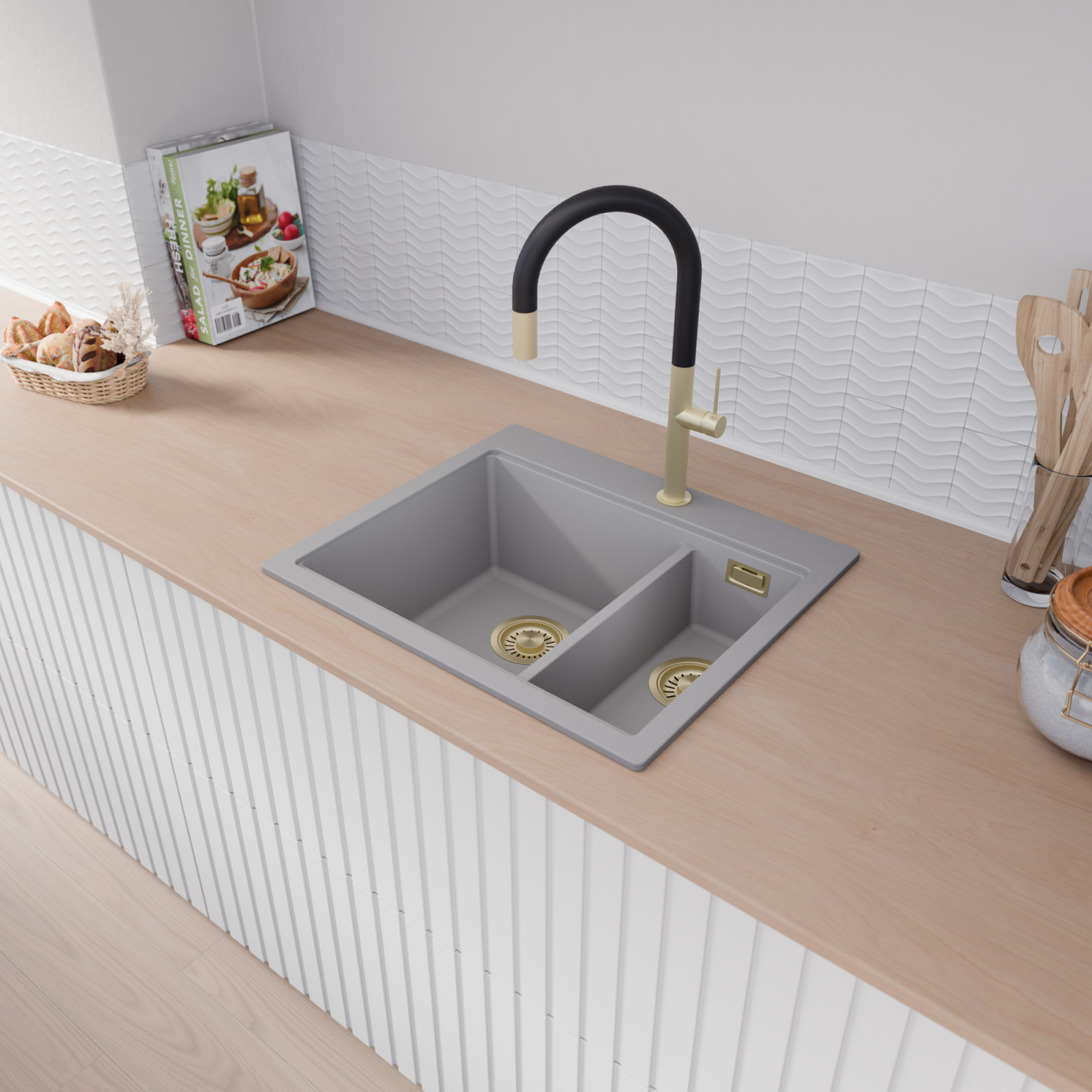 A mosogató prémium minőségű gránit kompozitból készült. Letisztult megjelenése mellett rendkívül praktikus, így bármilyen stílusú konyhába harmonikusan illeszkedik. A strapabíró gránit anyag hosszú távon is megbízható használatot garantál.
