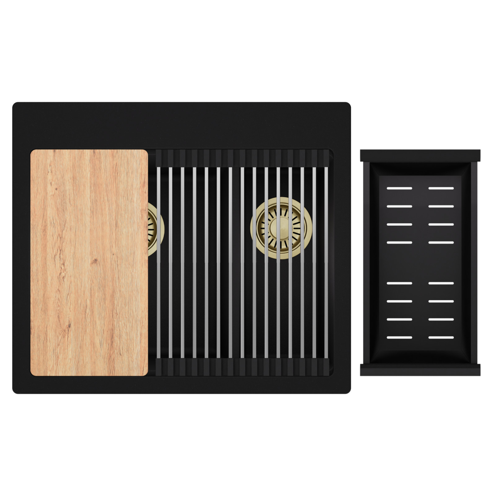HD Aspen 58 Kétmedencés mosogatótálca szett, vágódeszkával, csepegtetőráccsal és kosárral, matt fekete