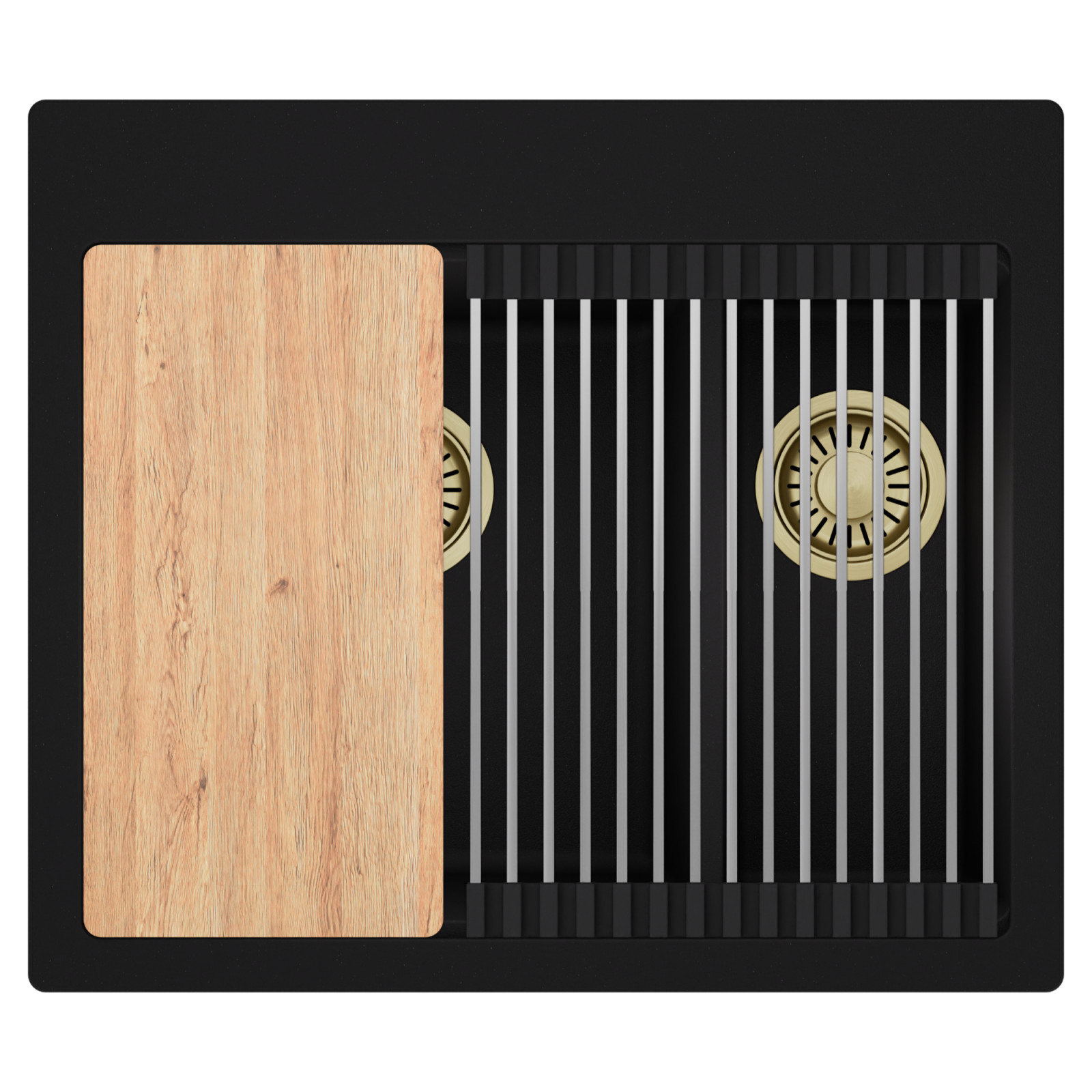 HD Aspen 58 Kétmedencés mosogatótálca szett, vágódeszkával és csepegtetőráccsal, matt fekete