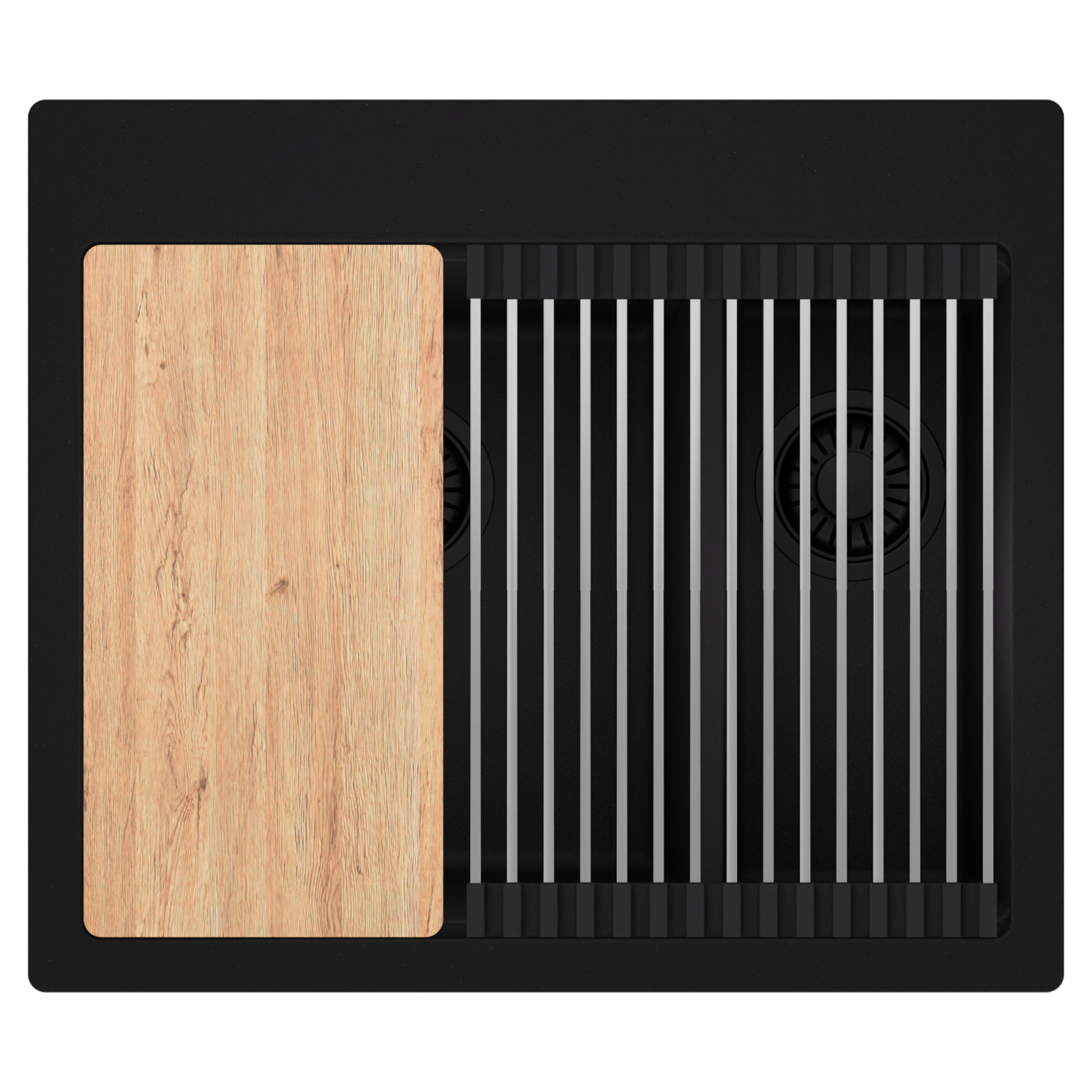 HD Aspen 58 Kétmedencés mosogatótálca szett, vágódeszkával és csepegtetőráccsal, matt fekete