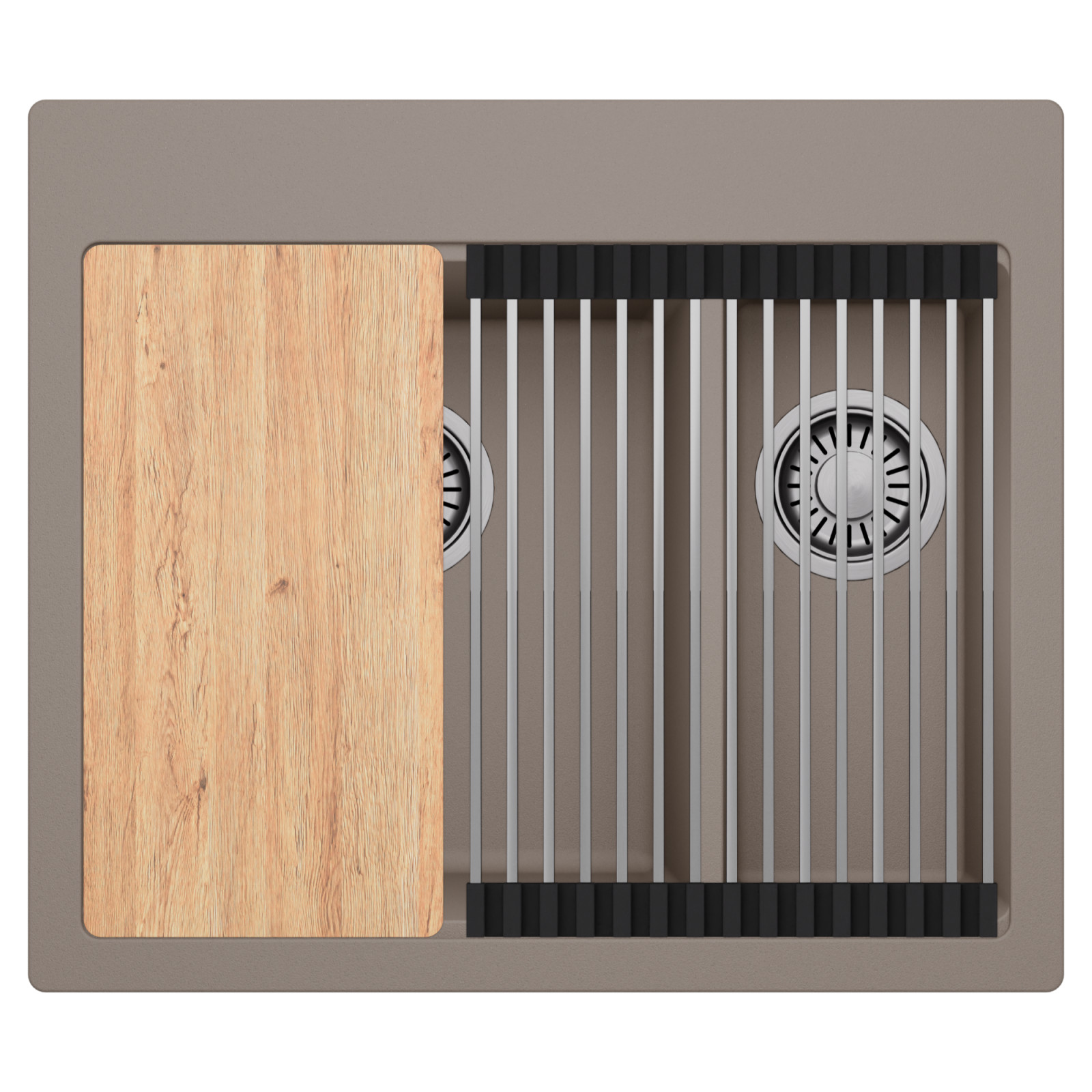 HD Aspen Tortora 58 Kétmedencés mosogatótálca szett, vágódeszkával és csepegtetőráccsal, tortora