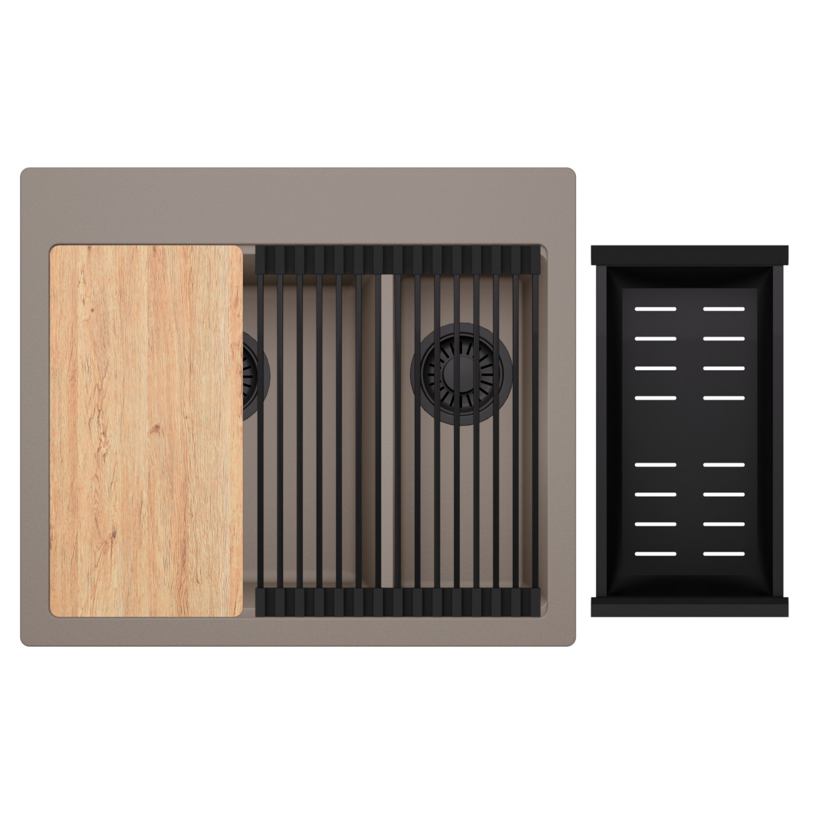 HD Aspen Tortora 58 Kétmedencés mosogatótálca szett, vágódeszkával, csepegtetőráccsal és kosárral, tortora