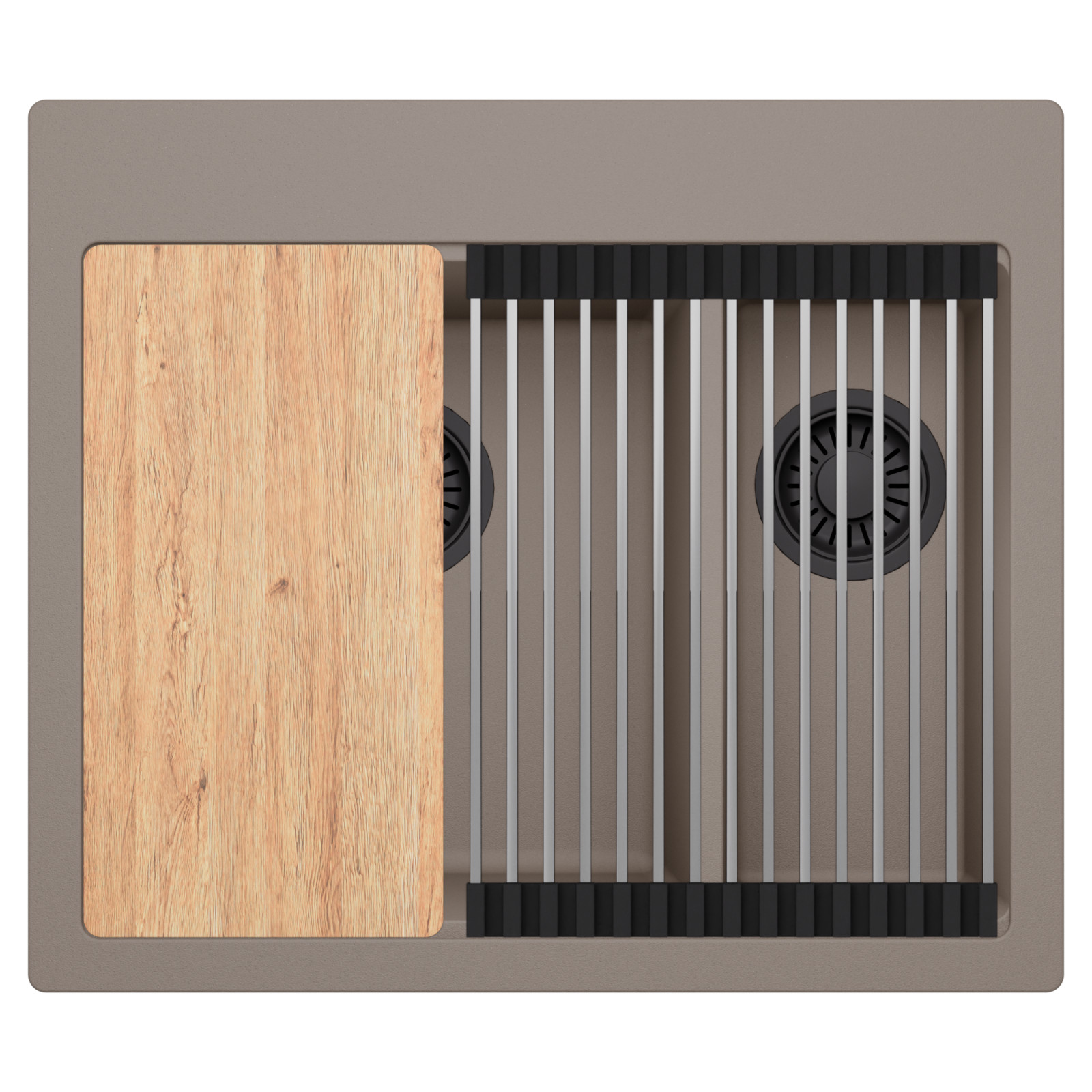 HD Aspen Tortora 58 Kétmedencés mosogatótálca szett, vágódeszkával és csepegtetőráccsal, tortora