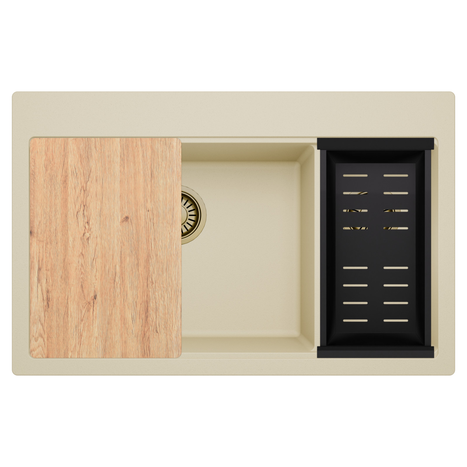HD Aspen Beige 78 Kétmedencés mosogatótálca szett, vágódeszkával és csepegtetőkosárral, soft bézs