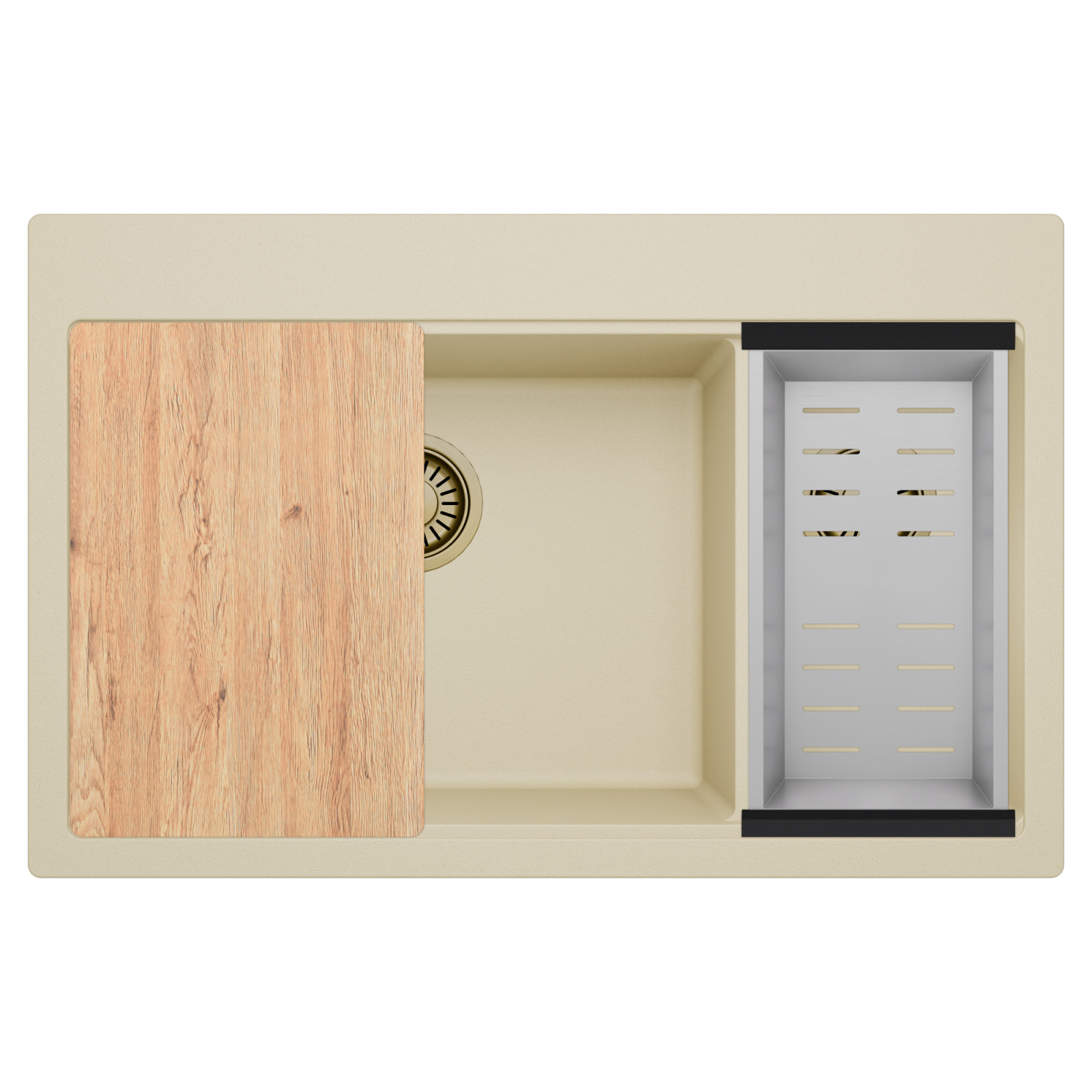 HD Aspen Beige 78 Kétmedencés mosogatótálca szett, vágódeszkával és csepegtetőkosárral, soft bézs