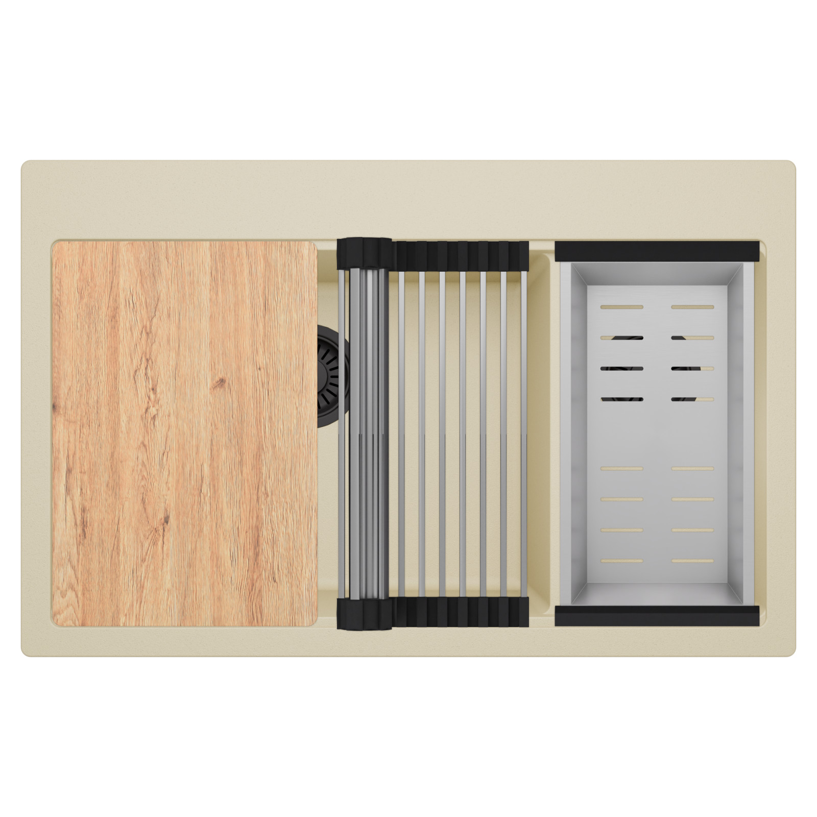 HD Aspen Beige 78 Kétmedencés mosogatótálca szett, vágódeszkával, csepegtetőráccsal és kosárral, soft bézs