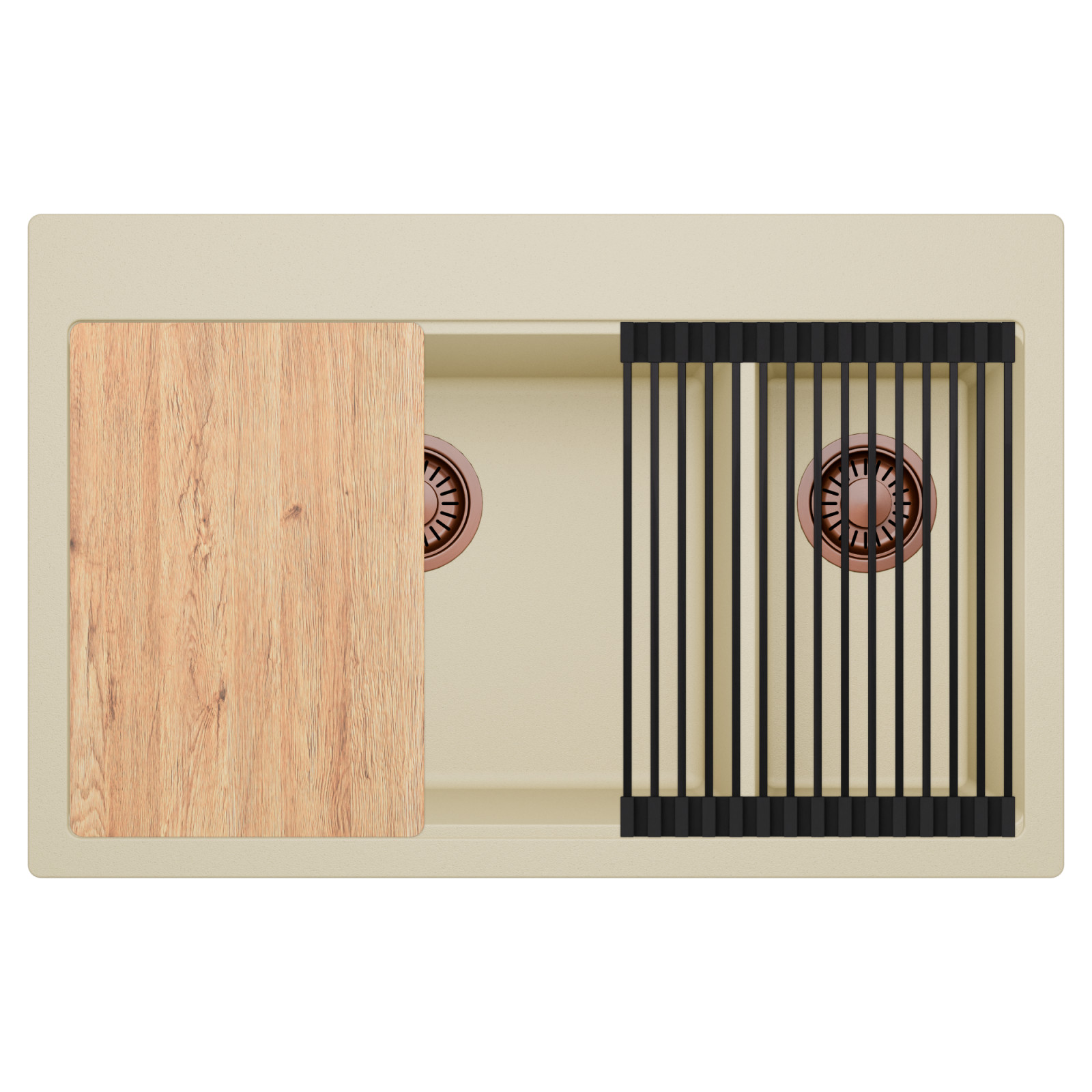 HD Aspen Beige 78 Kétmedencés mosogatótálca szett, vágódeszkával és csepegtetőráccsal, soft bézs