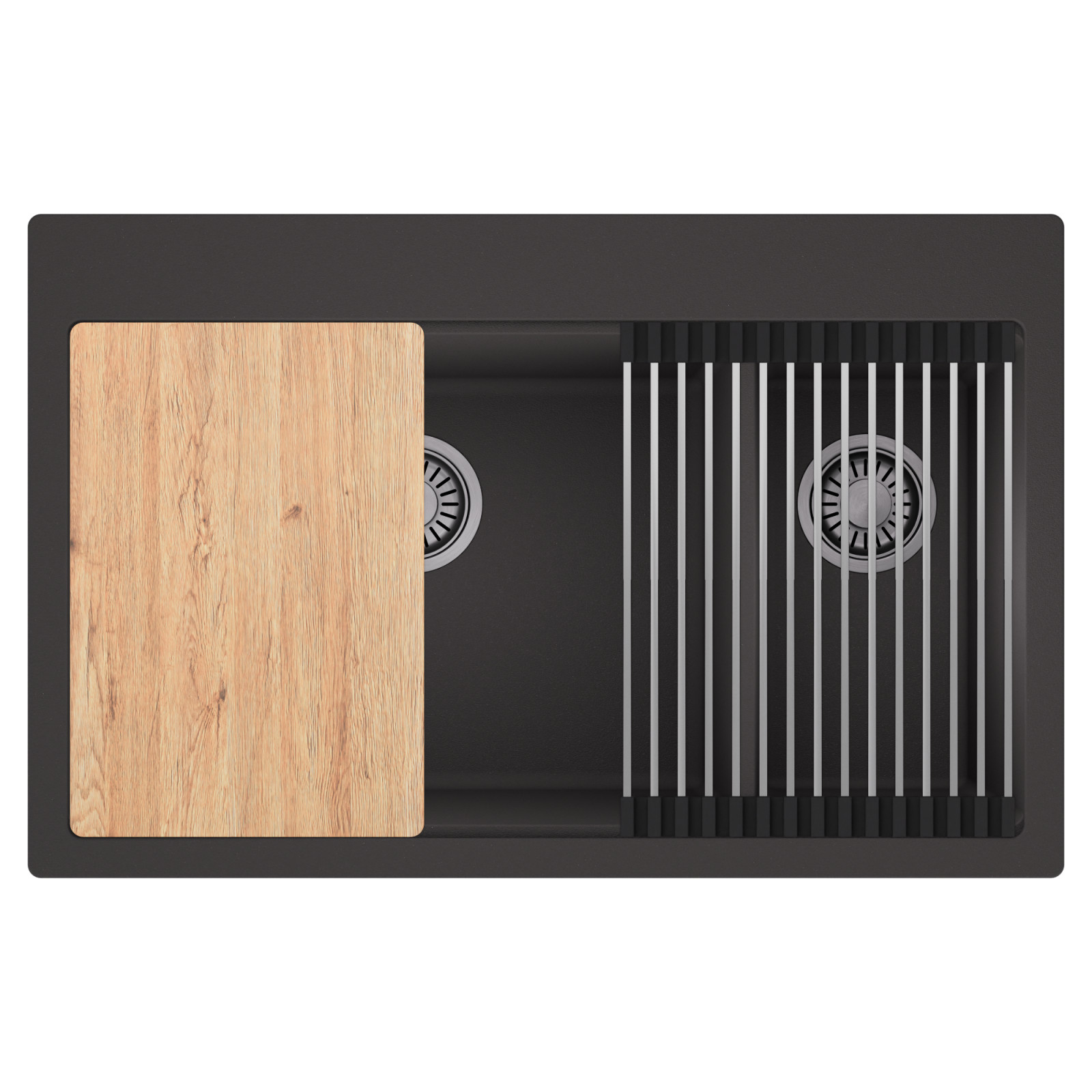 HD Aspen 78 Kétmedencés mosogatótálca szett, vágódeszkával és csepegtetőráccsal, matt antracit