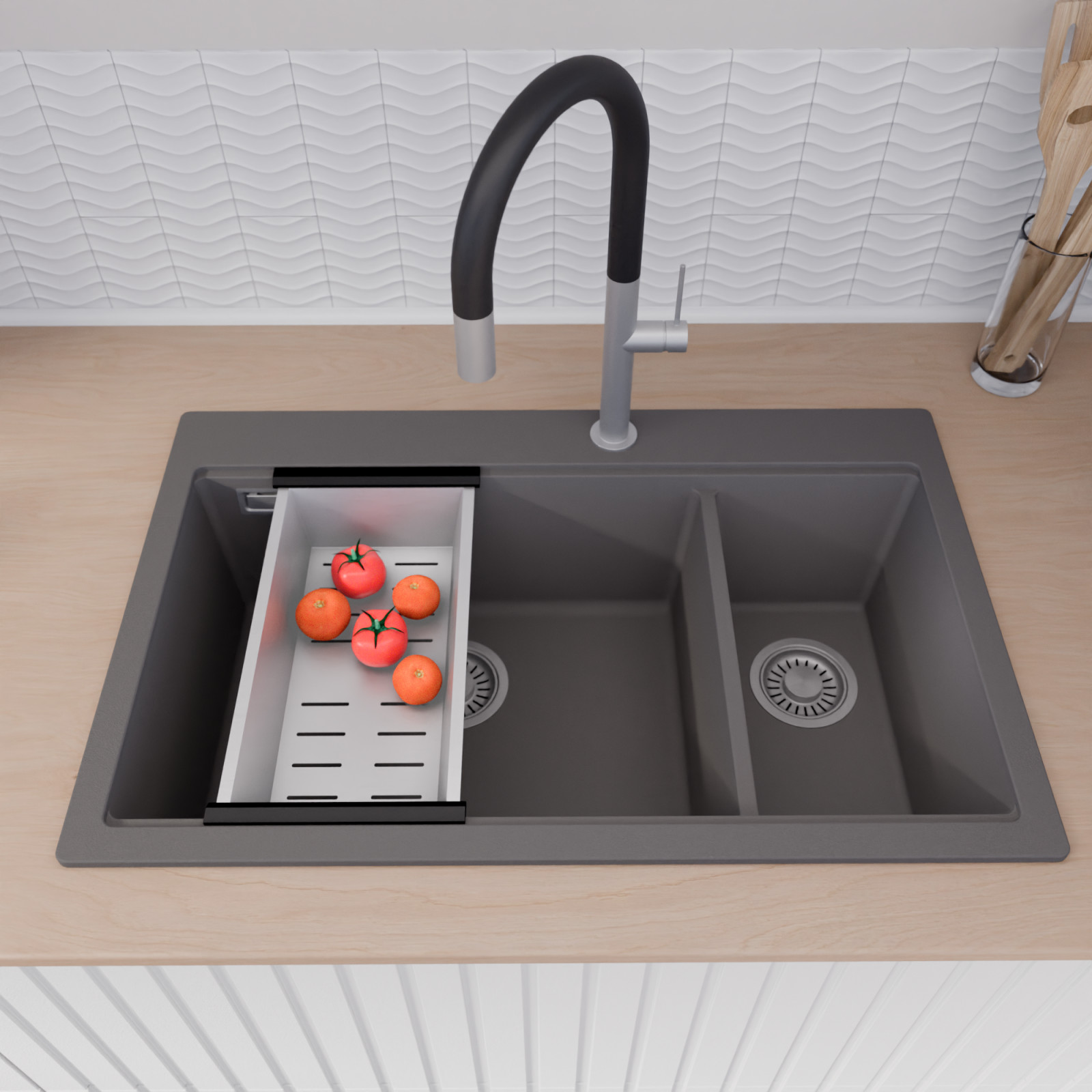 A mosogató prémium minőségű gránit kompozitból készült. Letisztult megjelenése mellett rendkívül praktikus, így bármilyen stílusú konyhába harmonikusan illeszkedik. A strapabíró gránit anyag hosszú távon is megbízható használatot garantál.