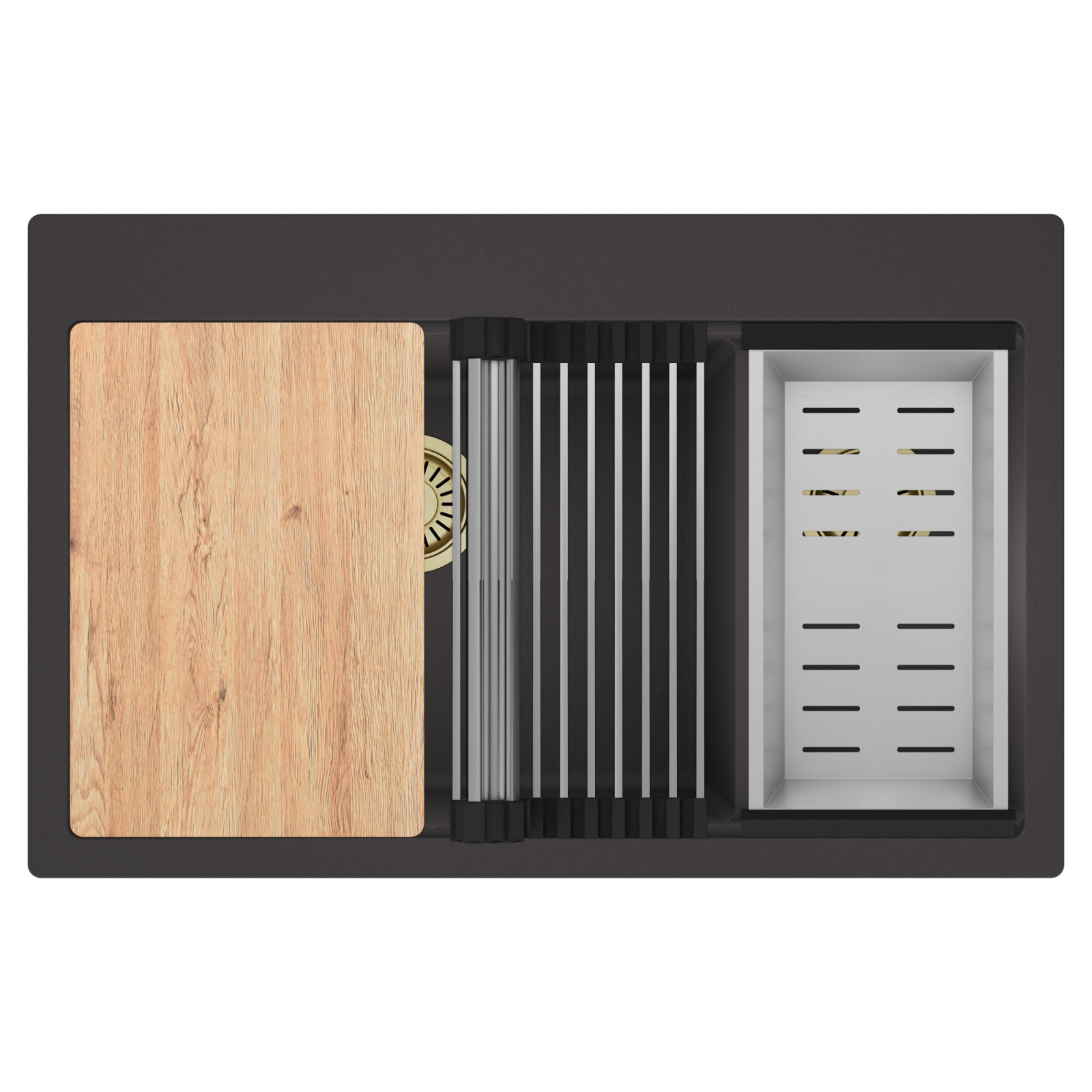 HD Aspen 78 Kétmedencés mosogatótálca szett, vágódeszkával, csepegtetőráccsal és kosárral, matt antracit