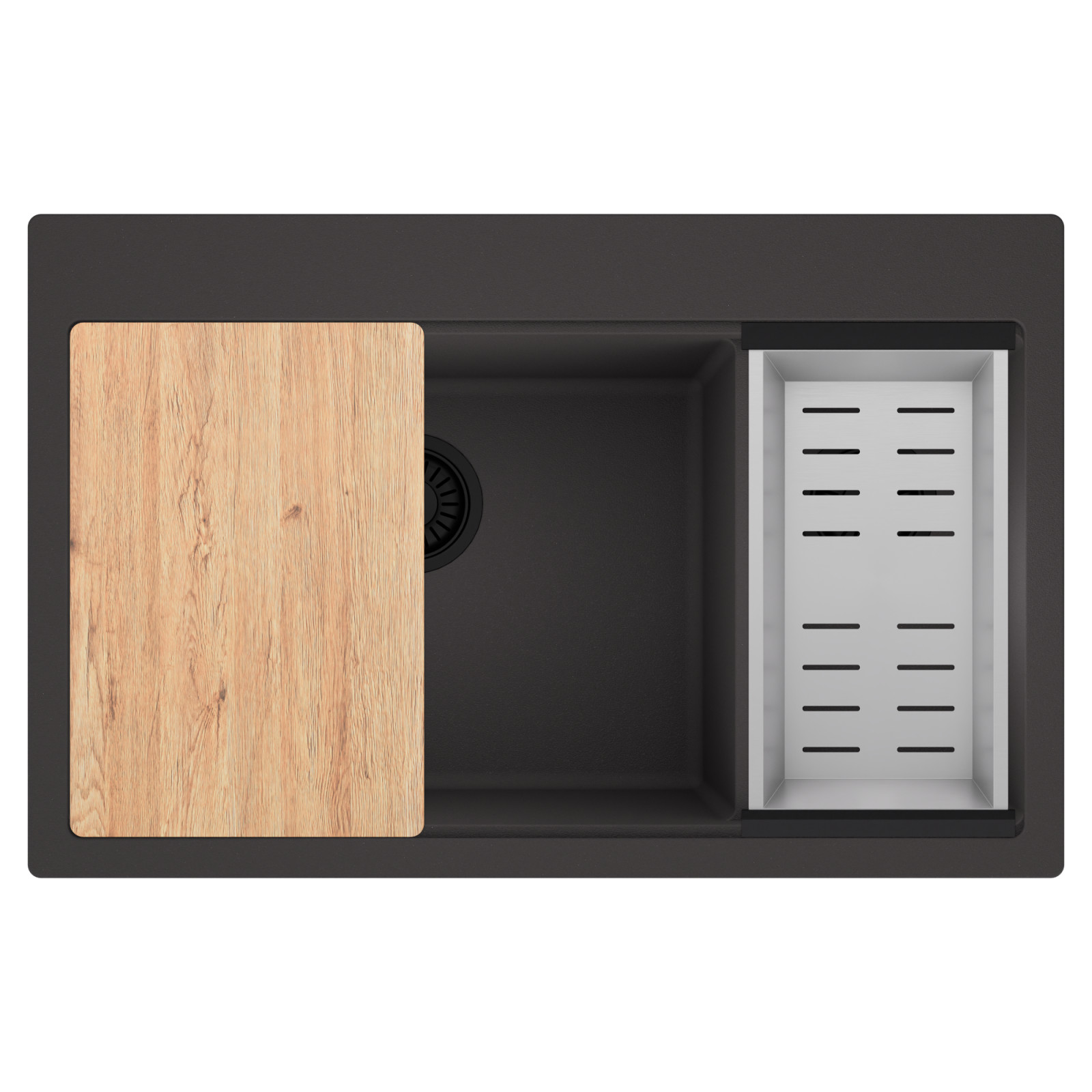 HD Aspen 78 Kétmedencés mosogatótálca szett, vágódeszkával és csepegtetőkosárral, matt antracit
