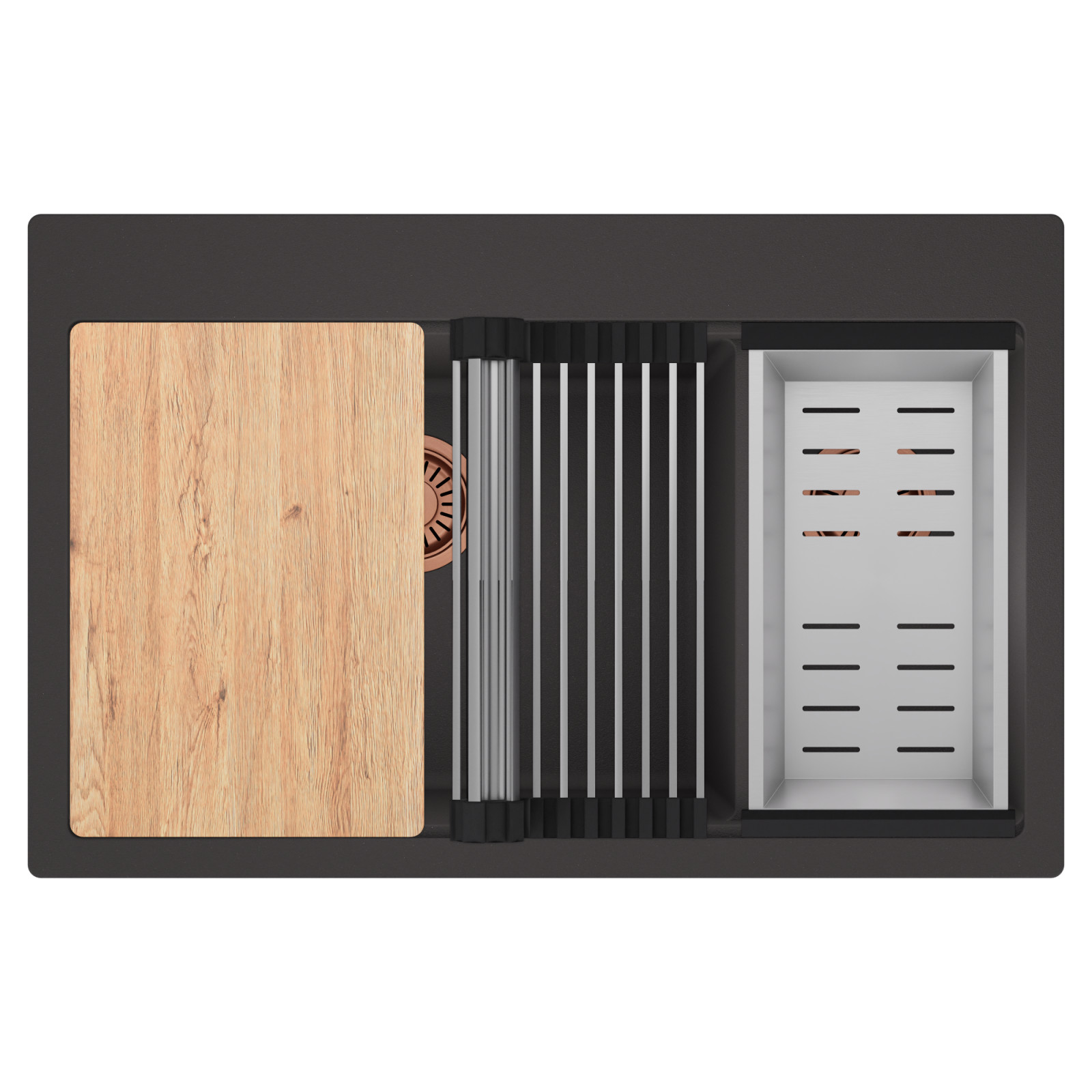 HD Aspen 78 Kétmedencés mosogatótálca szett, vágódeszkával, csepegtetőráccsal és kosárral, matt antracit