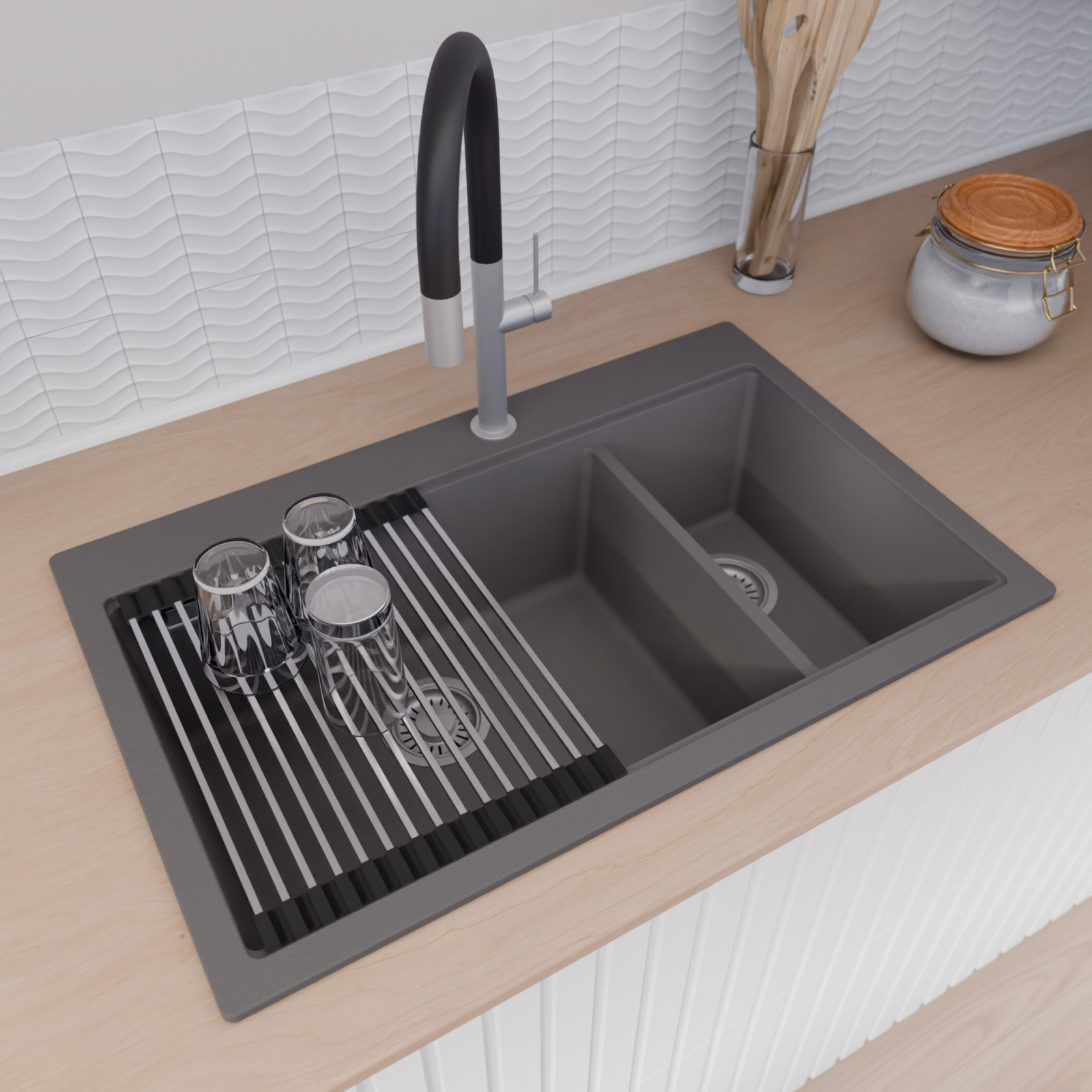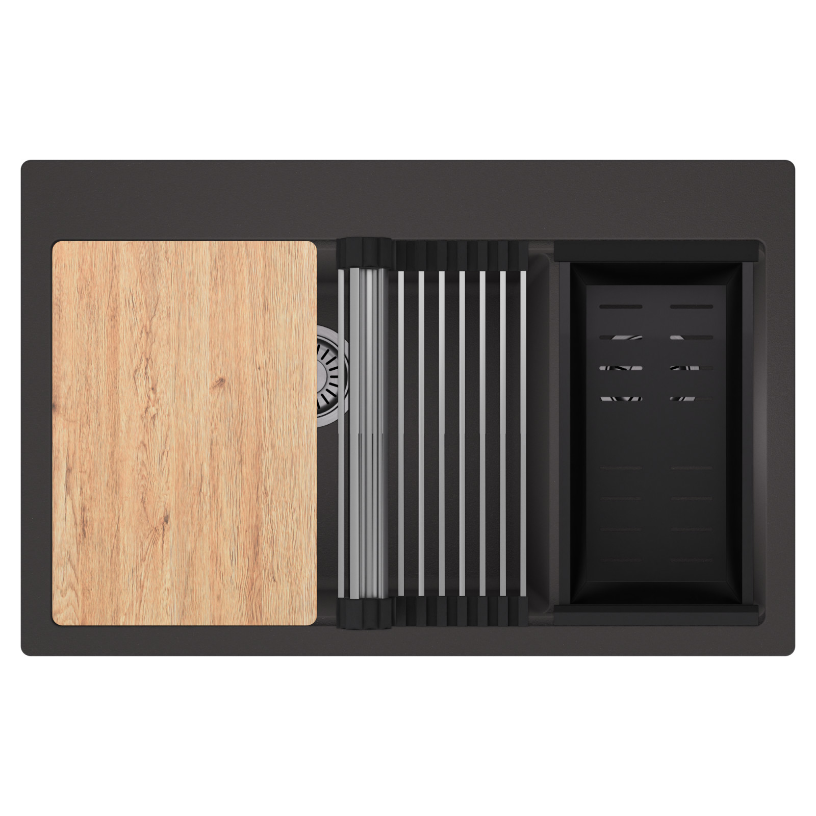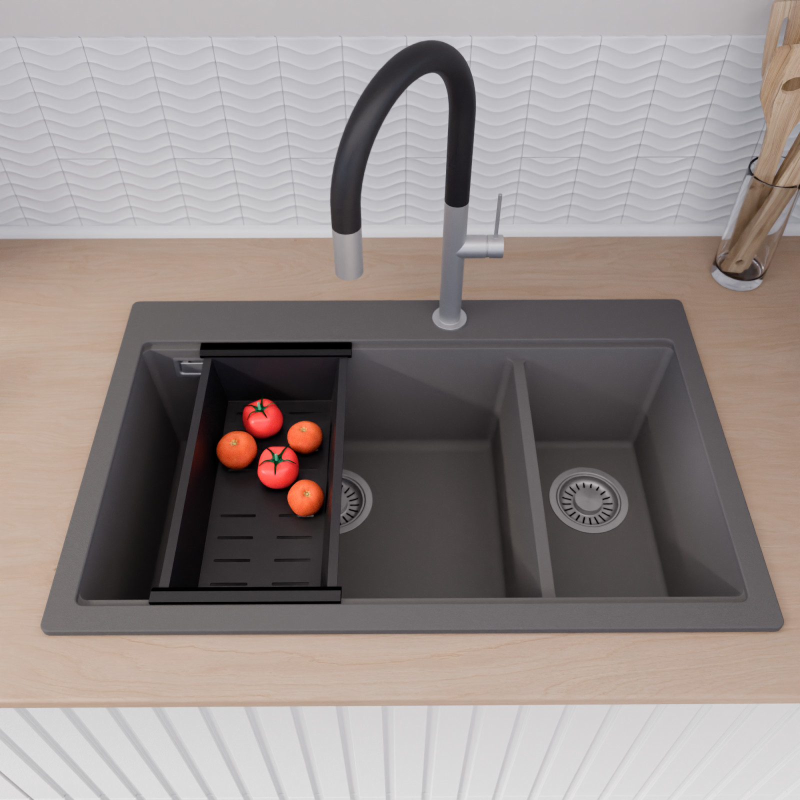 HD Aspen 78 Kétmedencés mosogatótálca szett, vágódeszkával, csepegtetőráccsal és kosárral, matt antracit