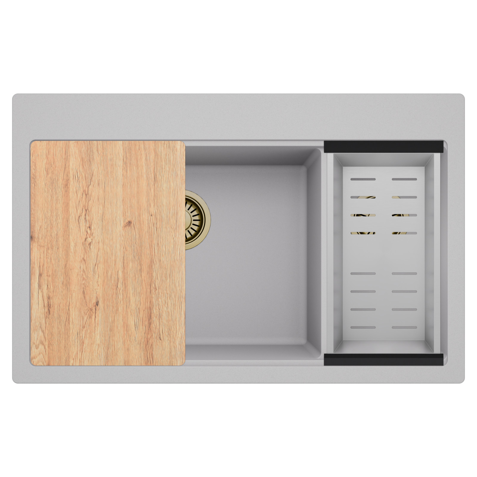HD Aspen Grey 78 Kétmedencés mosogatótálca szett, vágódeszkával és csepegtetőkosárral, alpesi szürke