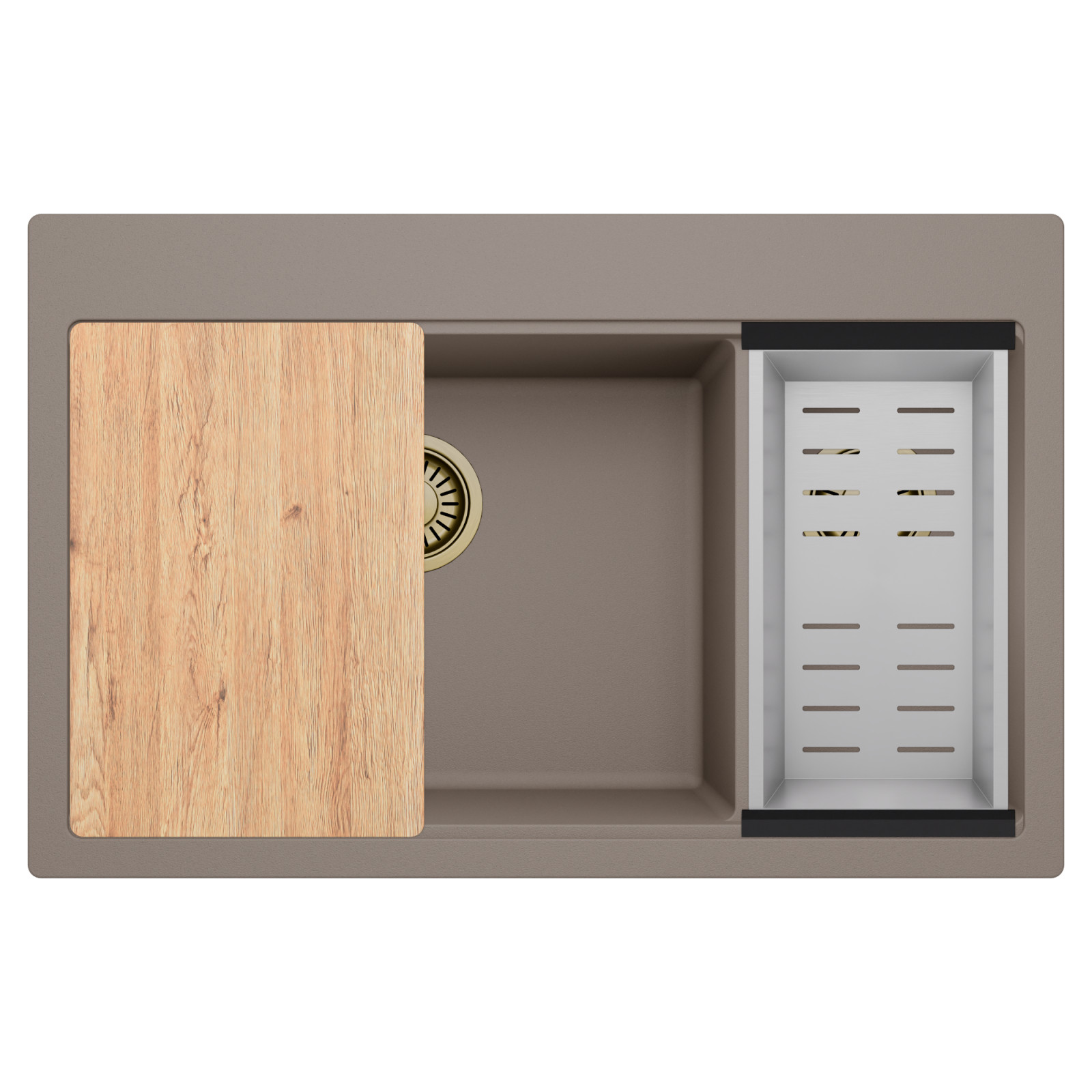 HD Aspen Tortora 78 Kétmedencés mosogatótálca szett, vágódeszkával és csepegtetőkosárral, tortora