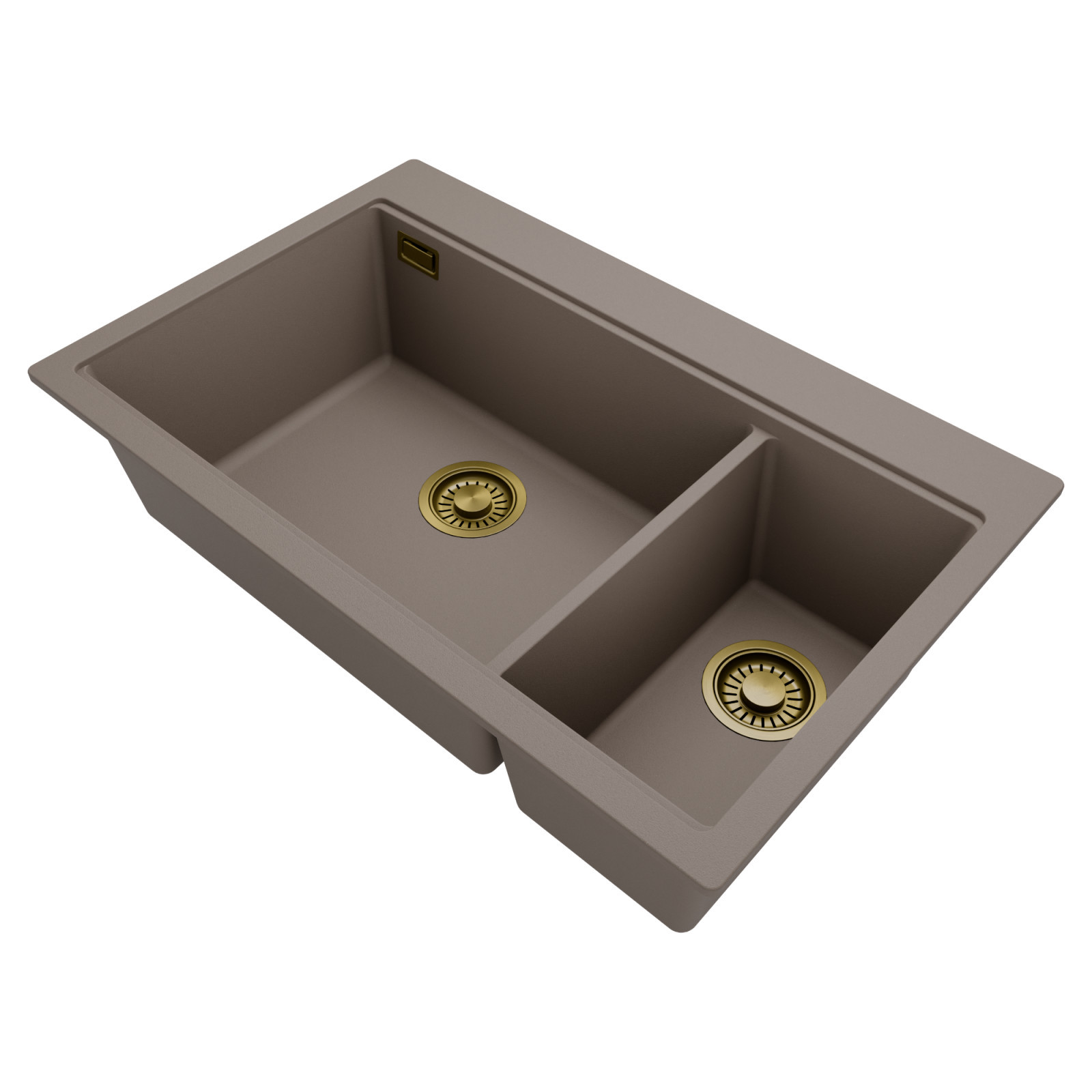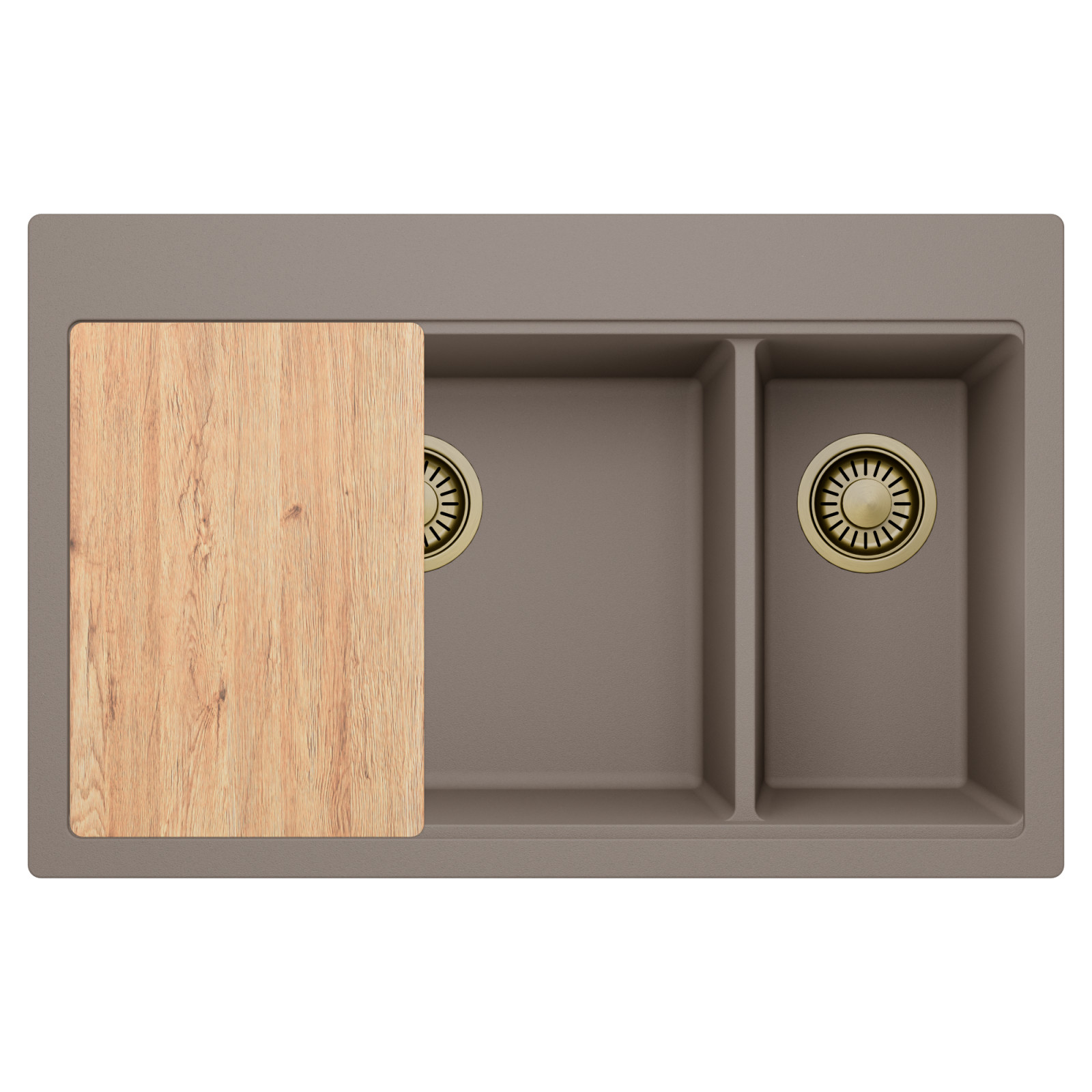 HD Aspen Tortora 78 Kétmedencés mosogatótálca szett, vágódeszkával, tortora