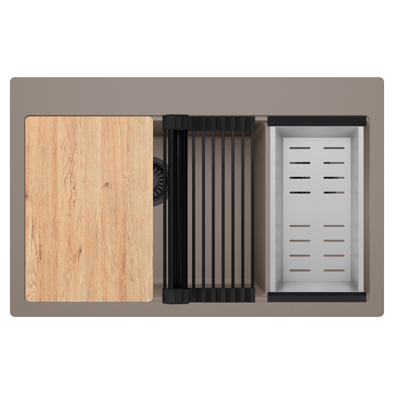 HD Aspen Tortora 78 Kétmedencés mosogatótálca szett, vágódeszkával, csepegtetőráccsal és kosárral, tortora