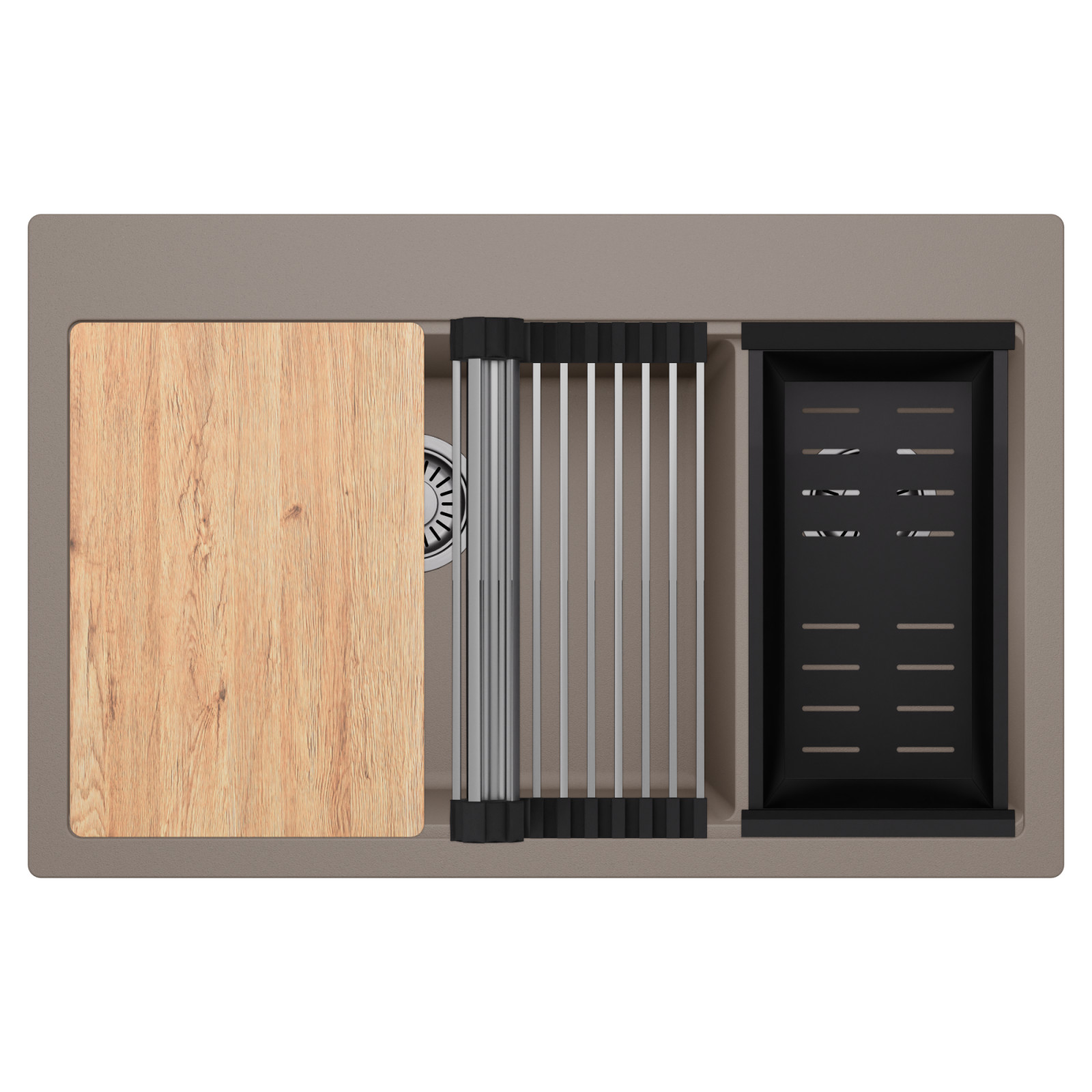 HD Aspen Tortora 78 Kétmedencés mosogatótálca szett, vágódeszkával, csepegtetőráccsal és kosárral, tortora