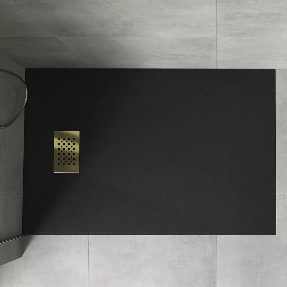 HD Marco Black 100x80 szögletes SMC zuhanytálca arany színű zuhanylefolyó ráccsal