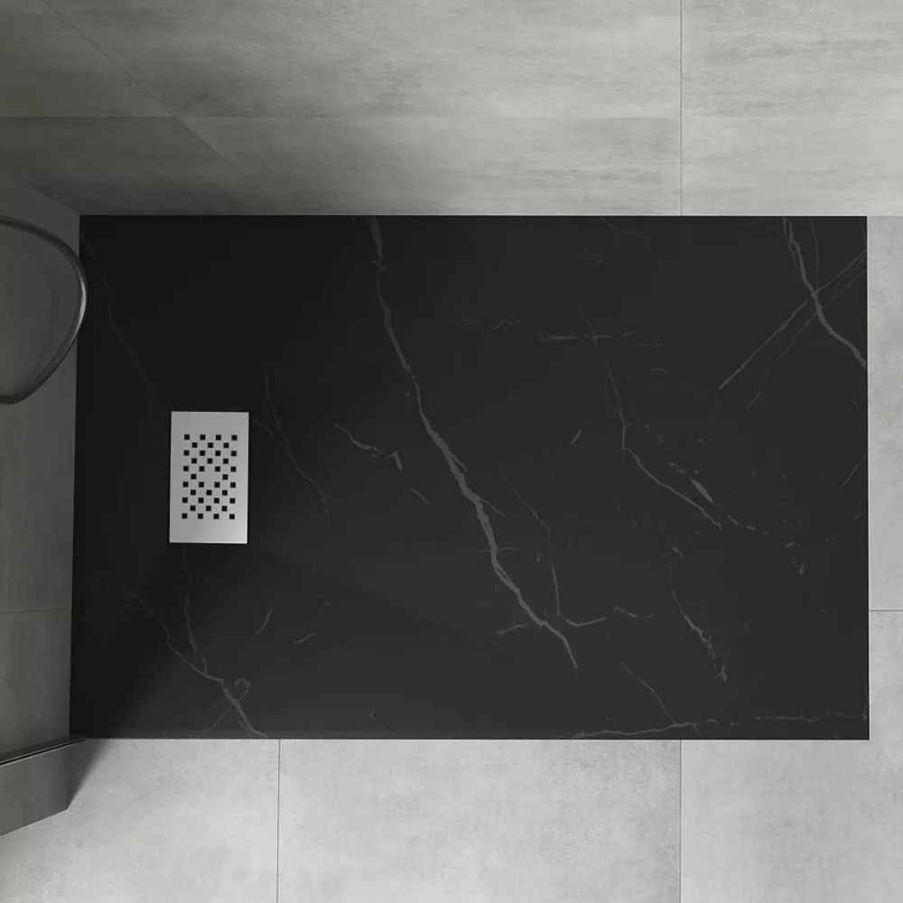 HD Marco Black Marble 100x80 szögletes SMC zuhanytálca fehér zuhanylefolyó ráccsal