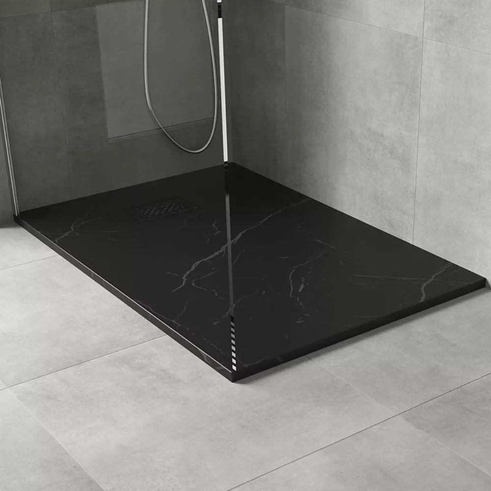 HD Marco Black Marble 100x80 szögletes SMC zuhanytálca fekete zuhanylefolyó ráccsal