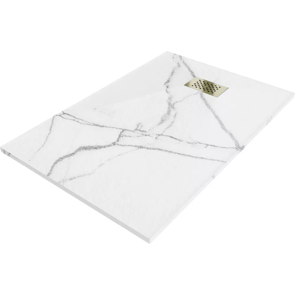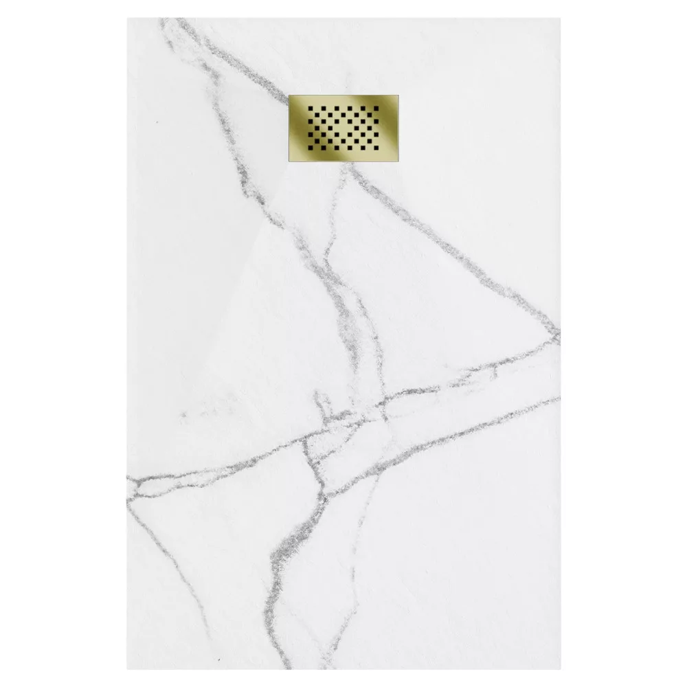 HD Marco White Marble 100x80 szögletes SMC zuhanytálca arany színű zuhanylefolyó ráccsal