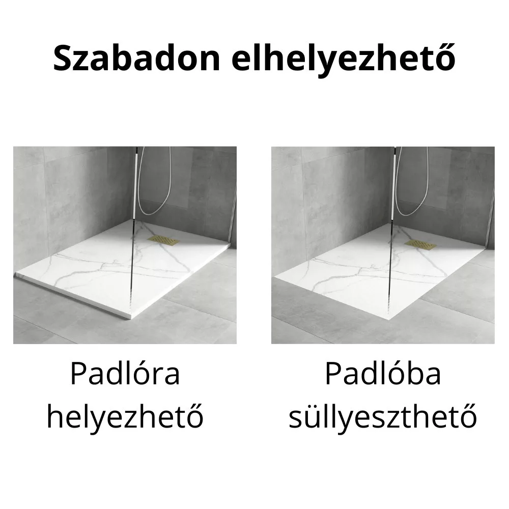 - Tartozékok: SMC kőhatású zuhanytálca, arany színű zuhanylefolyó rács, színazonos kőhatású SMC lefolyó takarófedél