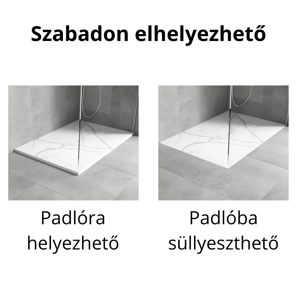 - Tartozékok: SMC kőhatású zuhanytálca, színazonos kőhatású SMC lefolyó takarófedél, zuhanytálca szifon