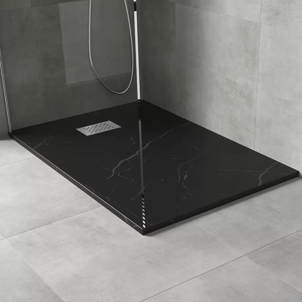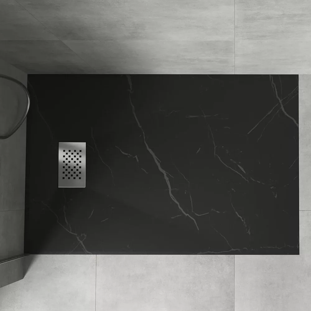 HD Marco Black Marble 100x80 szögletes SMC zuhanytálca krómozott zuhanylefolyó ráccsal