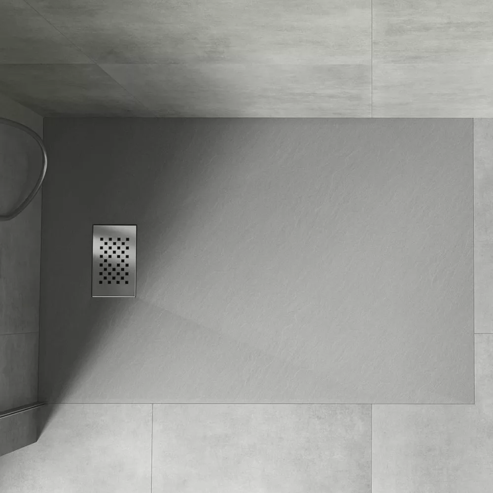 HD Marco Gray 100x80 szögletes SMC zuhanytálca krómozott zuhanylefolyó ráccsal