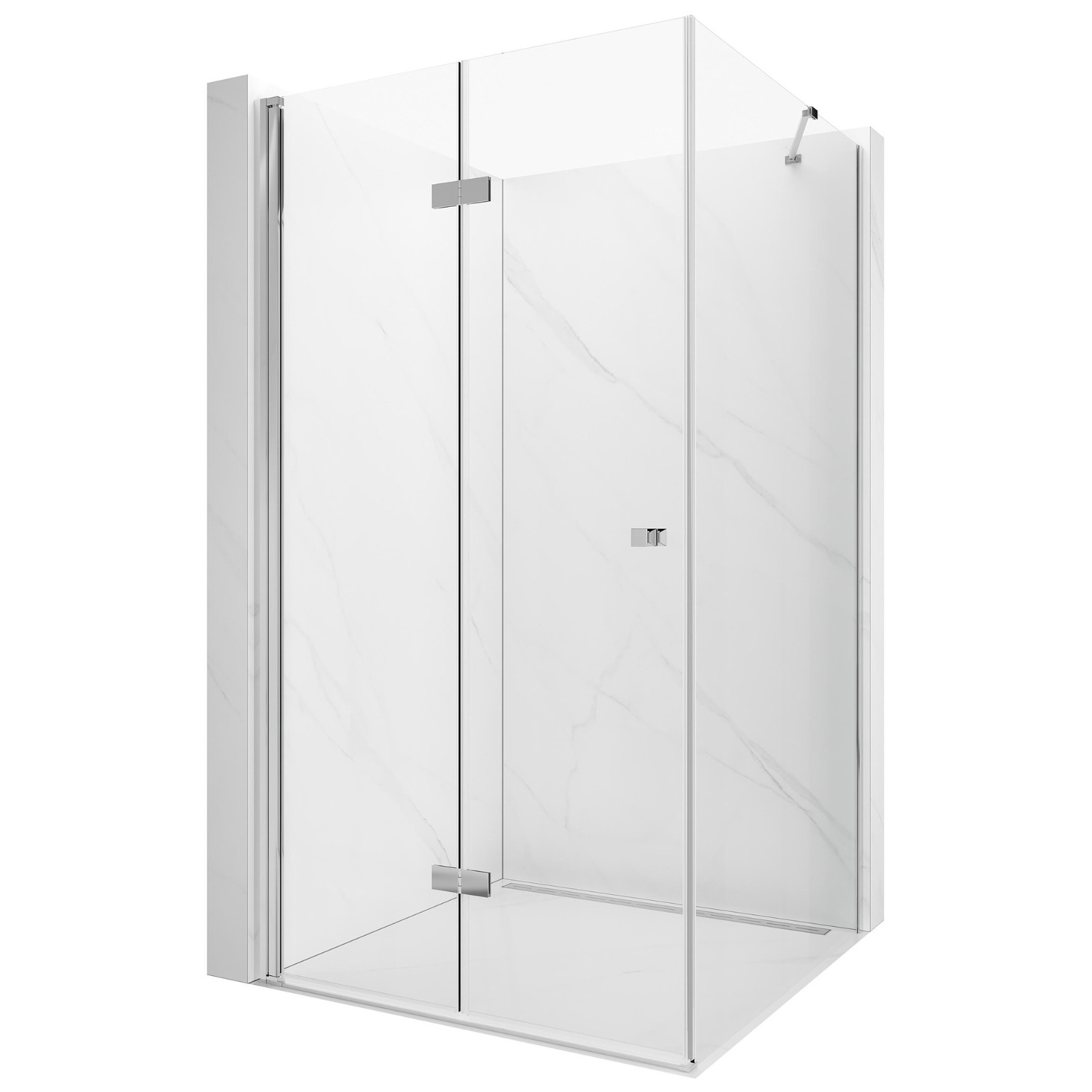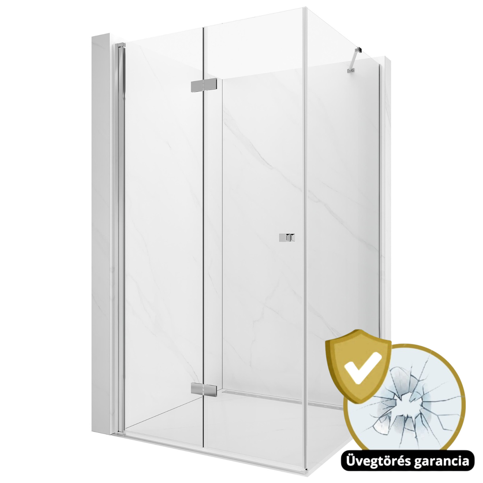 A krómozott zsanéroknak köszönhetően a zuhanyajtó szabadon csukható össze, aminek segítségével könnyedén léphetünk be a zuhanytérbe és ki a zuhanyzás végeztével.