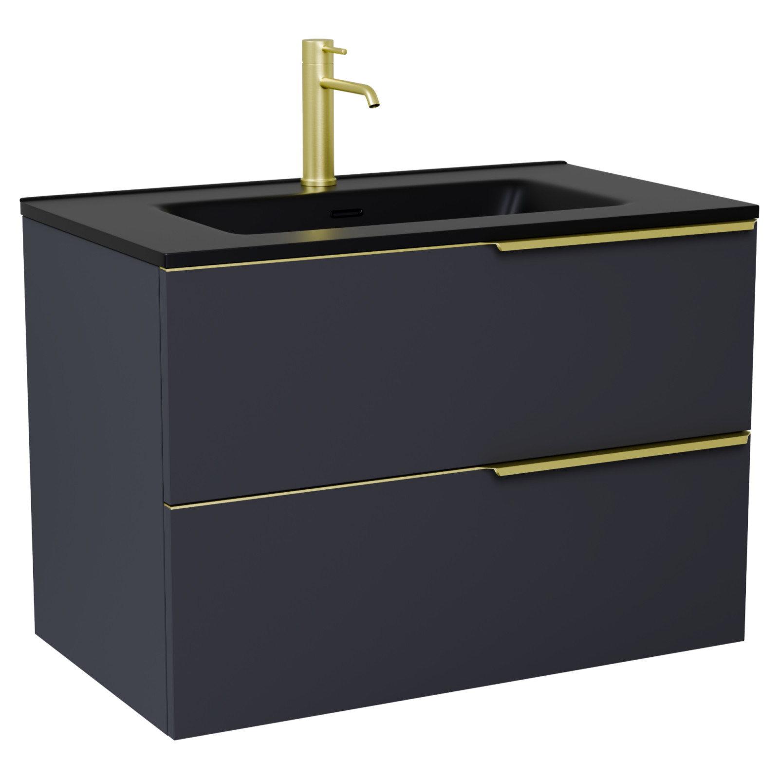 HD Cremona Matt Antracit 60 fali mosdószekrény szálcsiszolt arany fogantyúkkal és matt fekete slim mosdóval