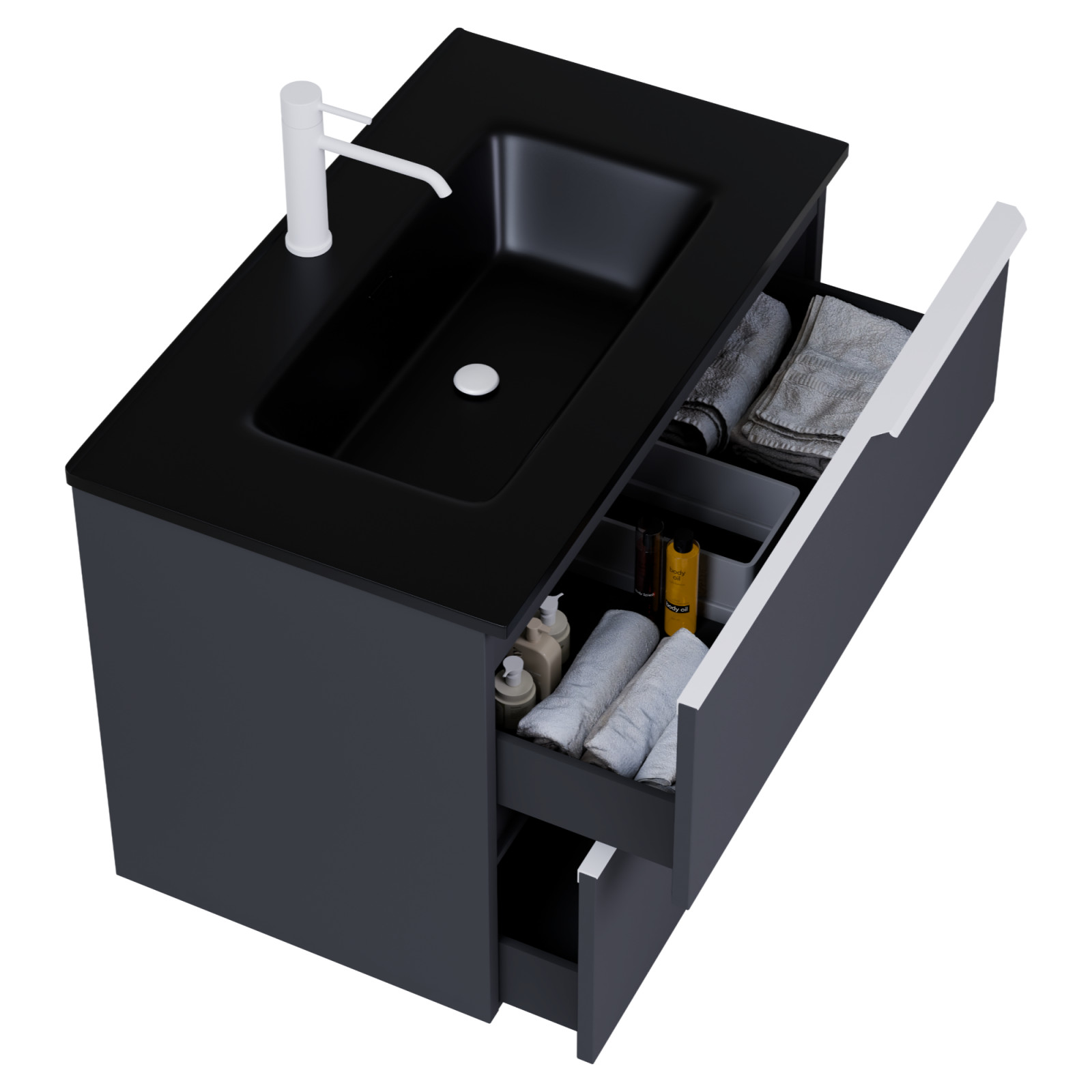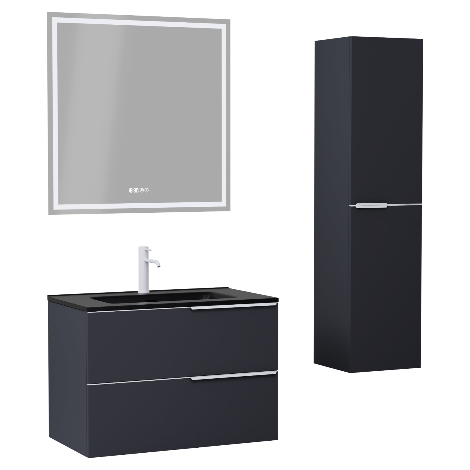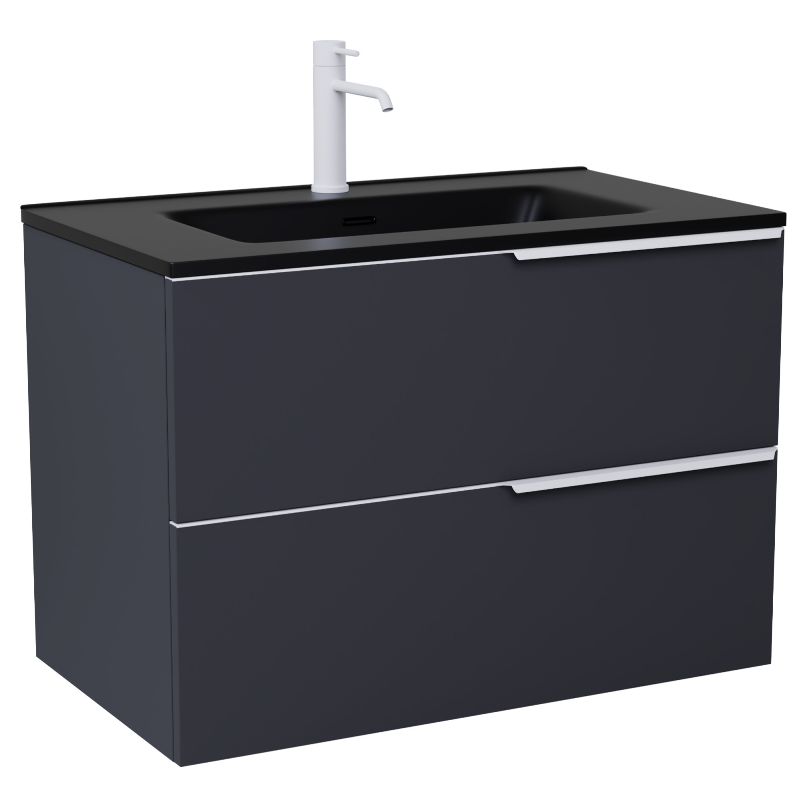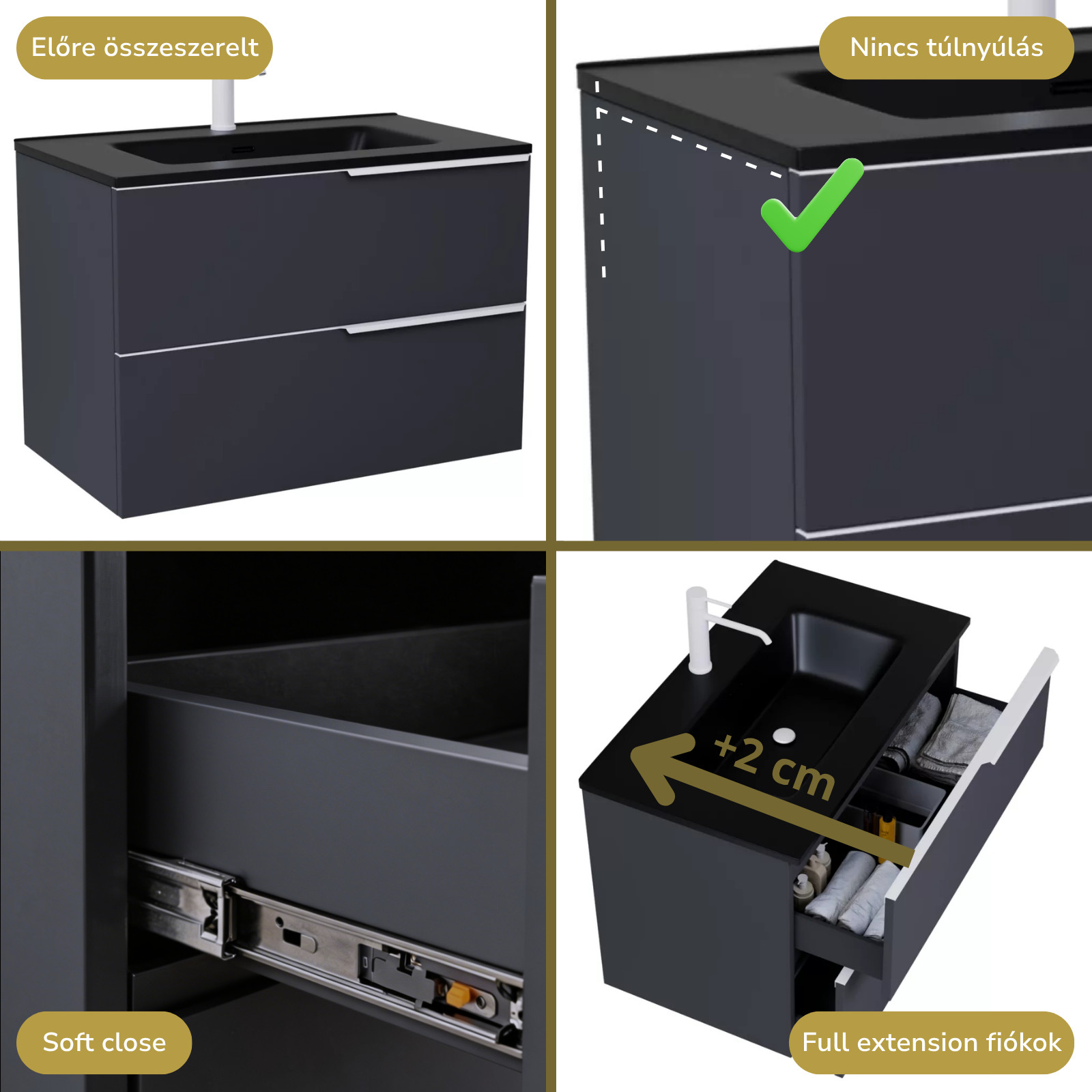 Cremona Matt Antracit 80 komplett fürdőszoba bútor szett, matt fehér fogantyúkkal