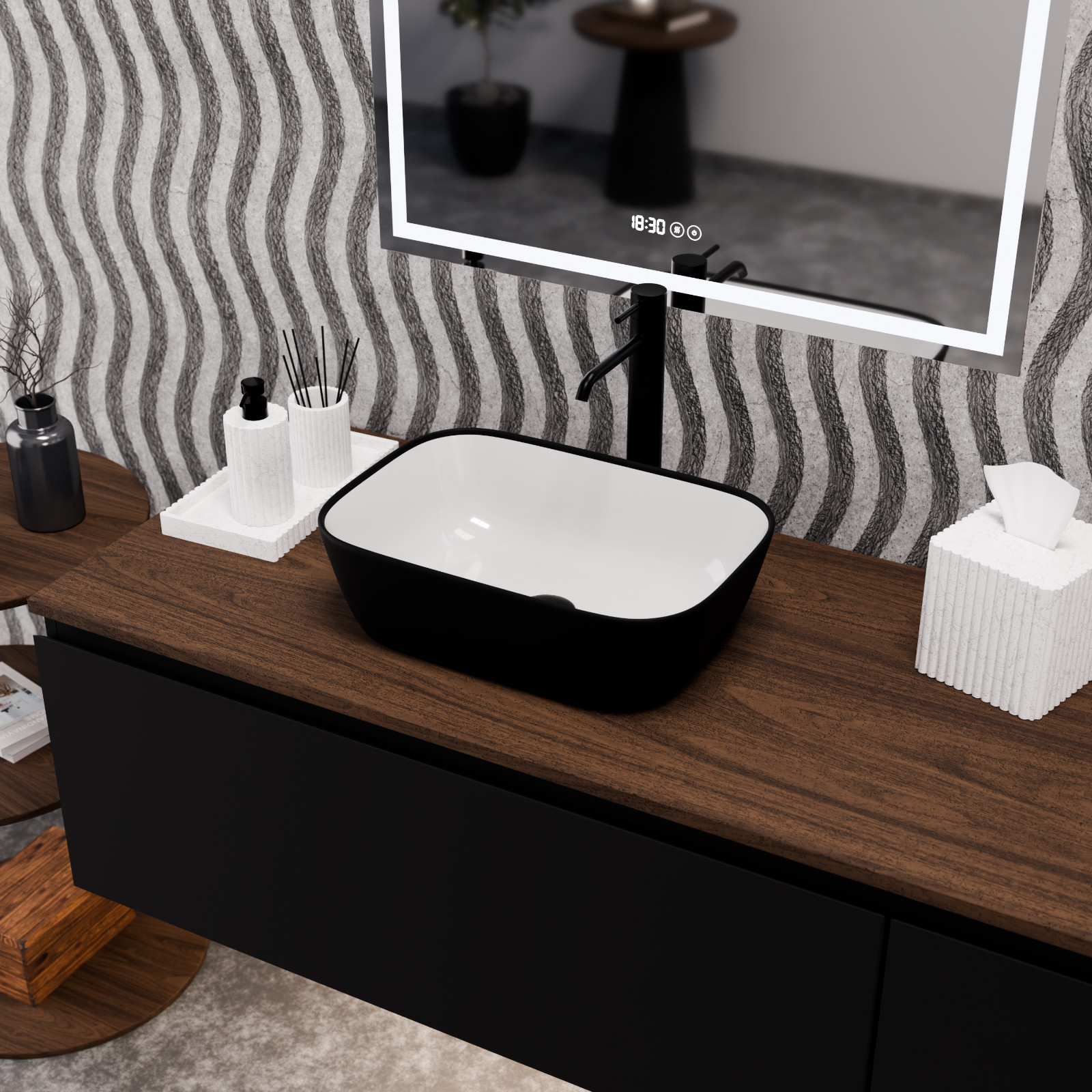 Mira Black&White pultra ültethető matt fekete-hófehér mosdótál