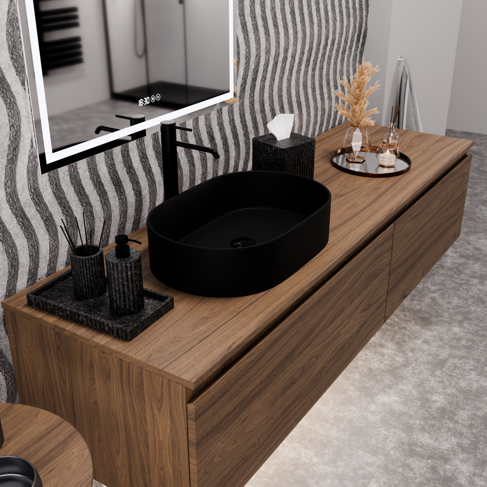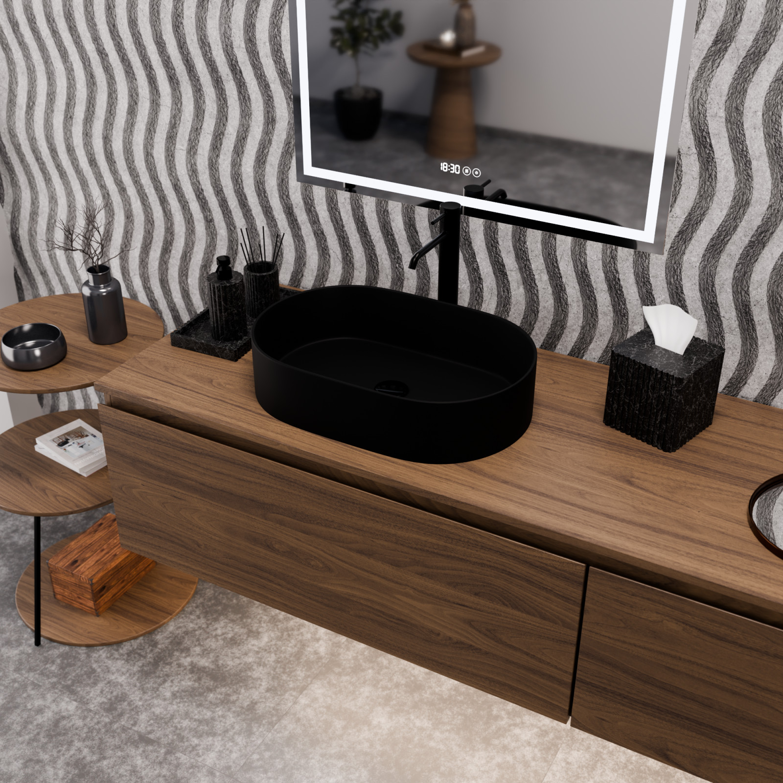 Luna Black pultra ültethető matt fekete mosdótál