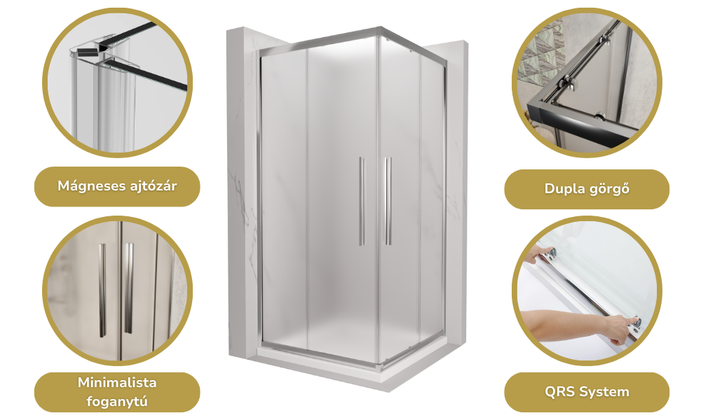 Az általunk legfontosabbnak vélt tulajdonságok szögletes zuhanykabinunknál: