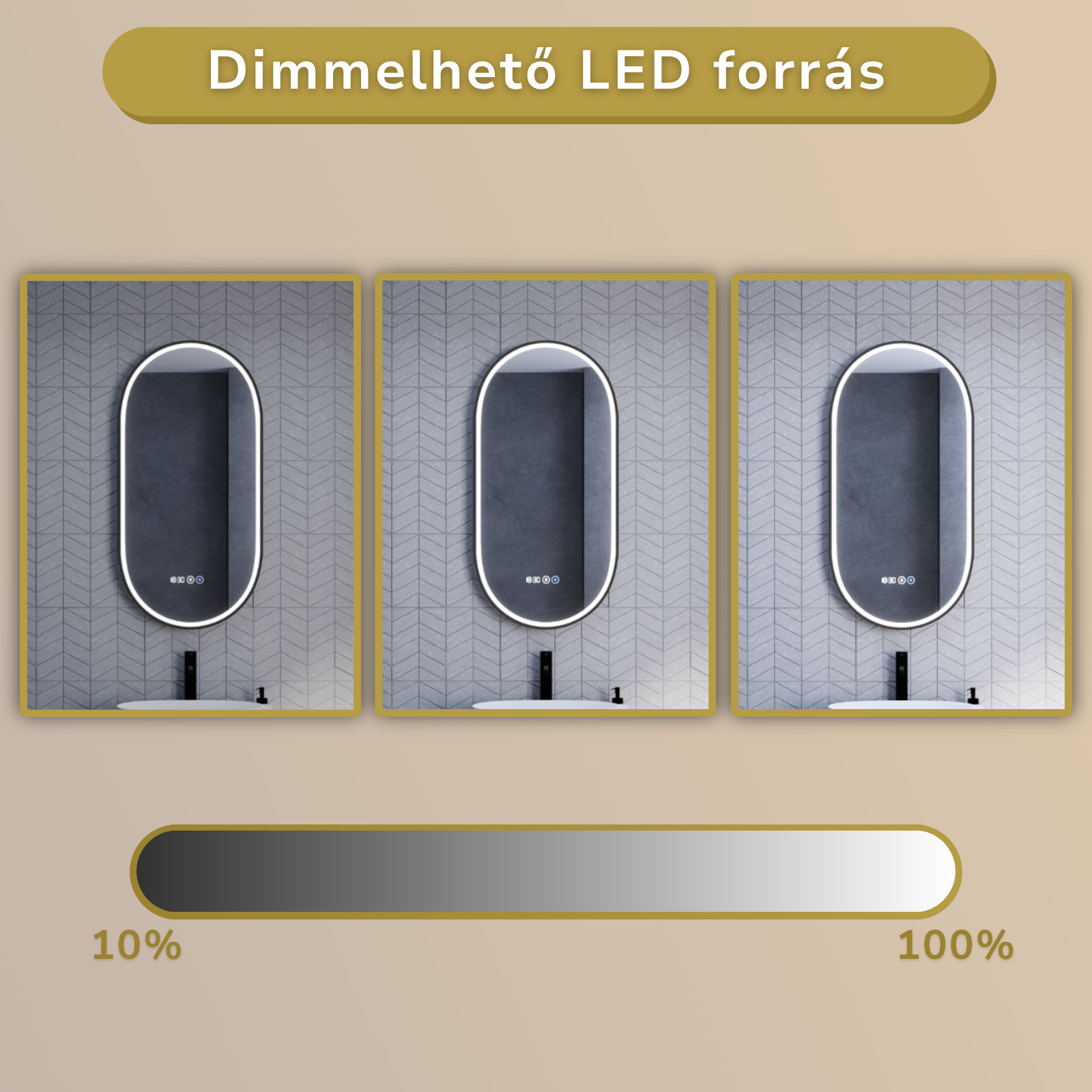 A tükör LED világítással rendelkezik, amely 3 féle színhőmérsékletet biztosít: meleg, semleges és hideg fehér.